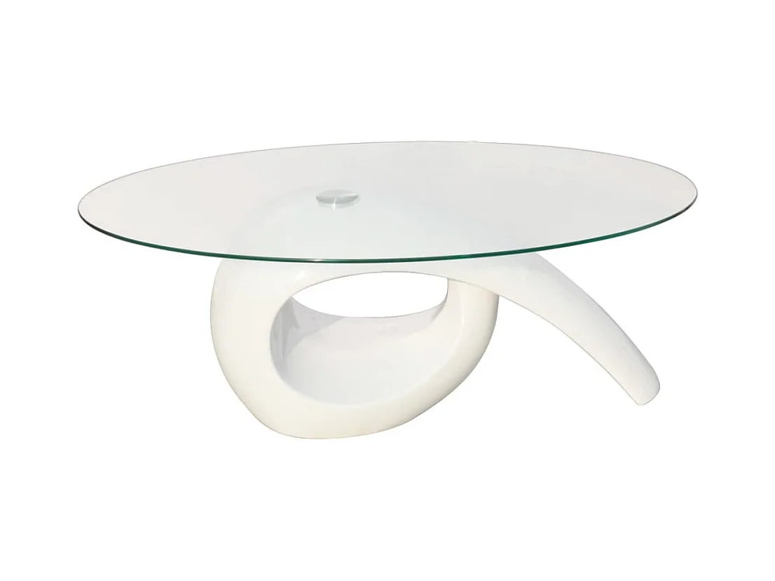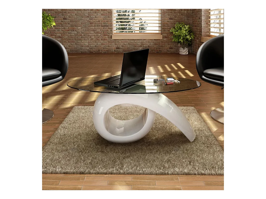 Table basse avec dessus de table en verre ovale Blanc brillant