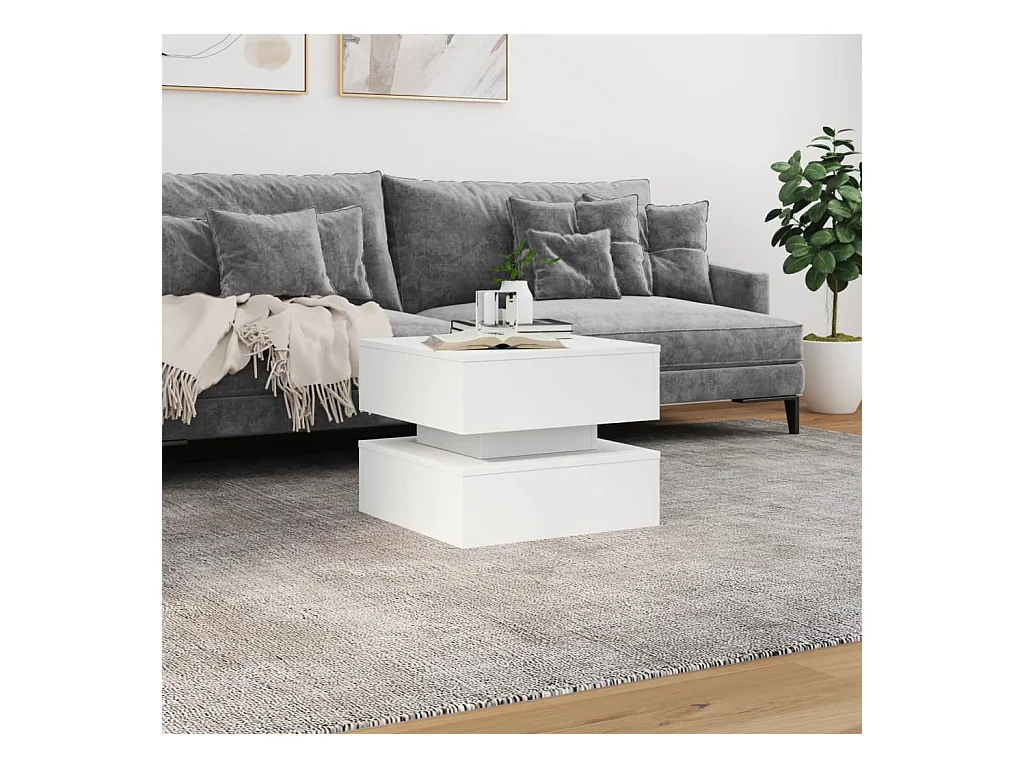 Table basse avec lumières LED blanc 50x50x40 cm FR31972