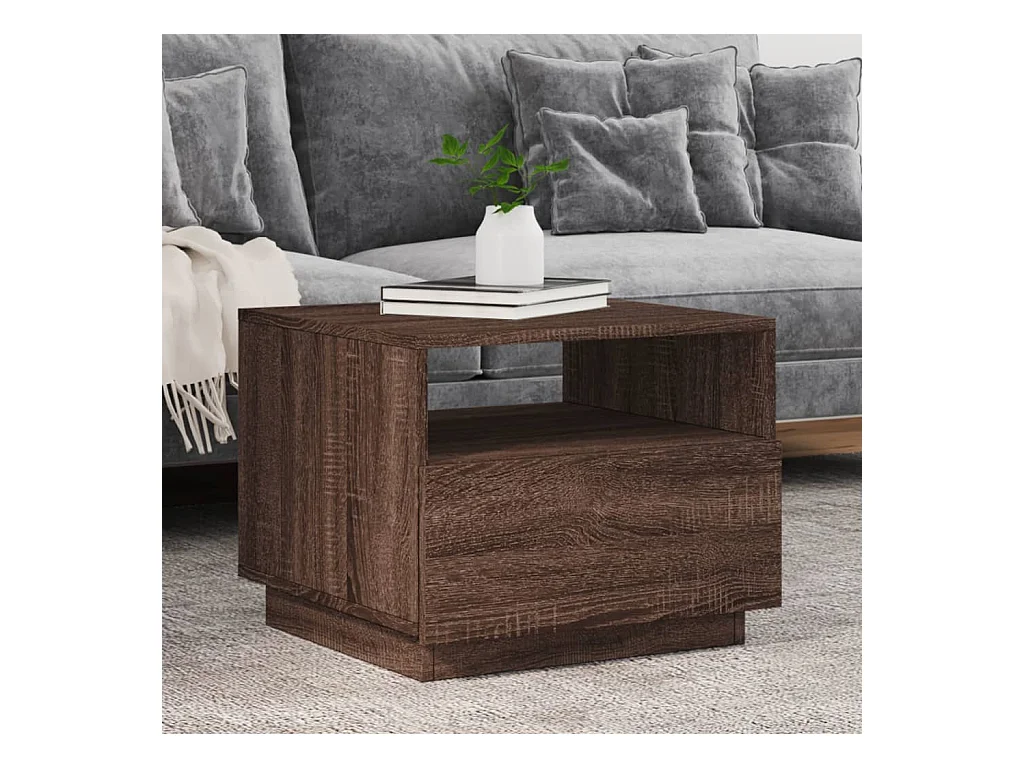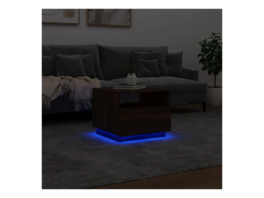 Table basse avec lumières LED chêne marron 50x49x40