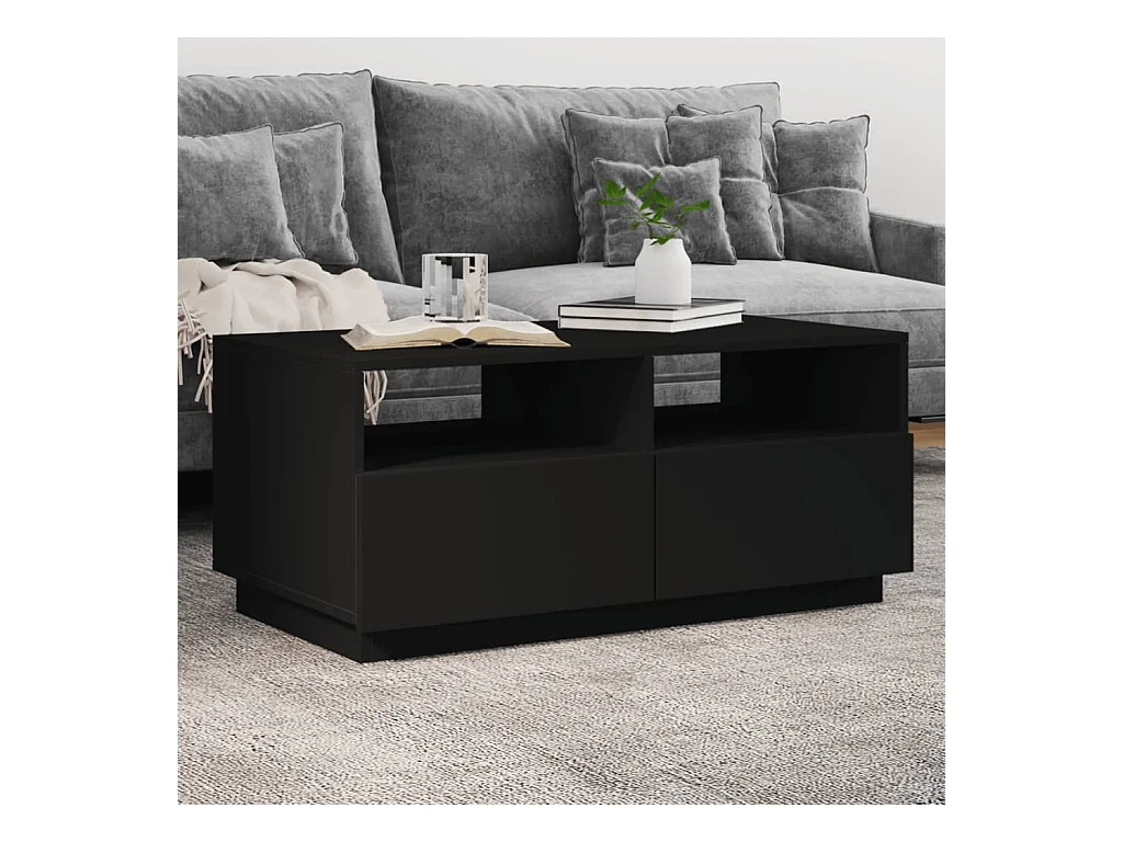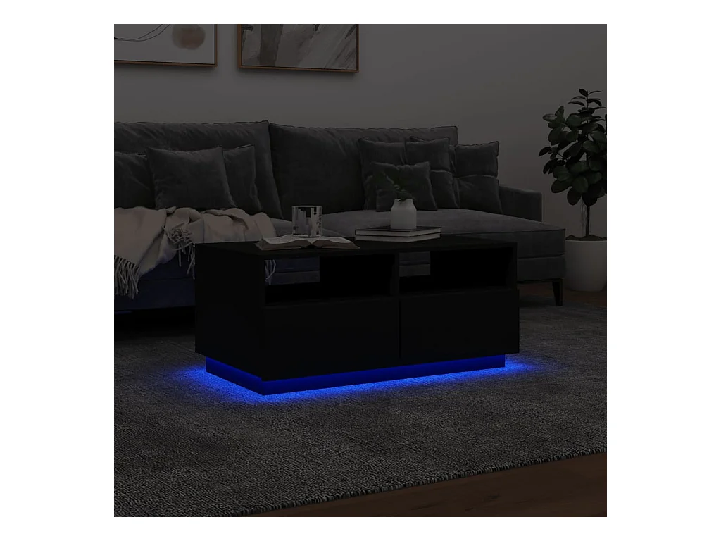 Table basse avec lumières LED noir 90x50x40
