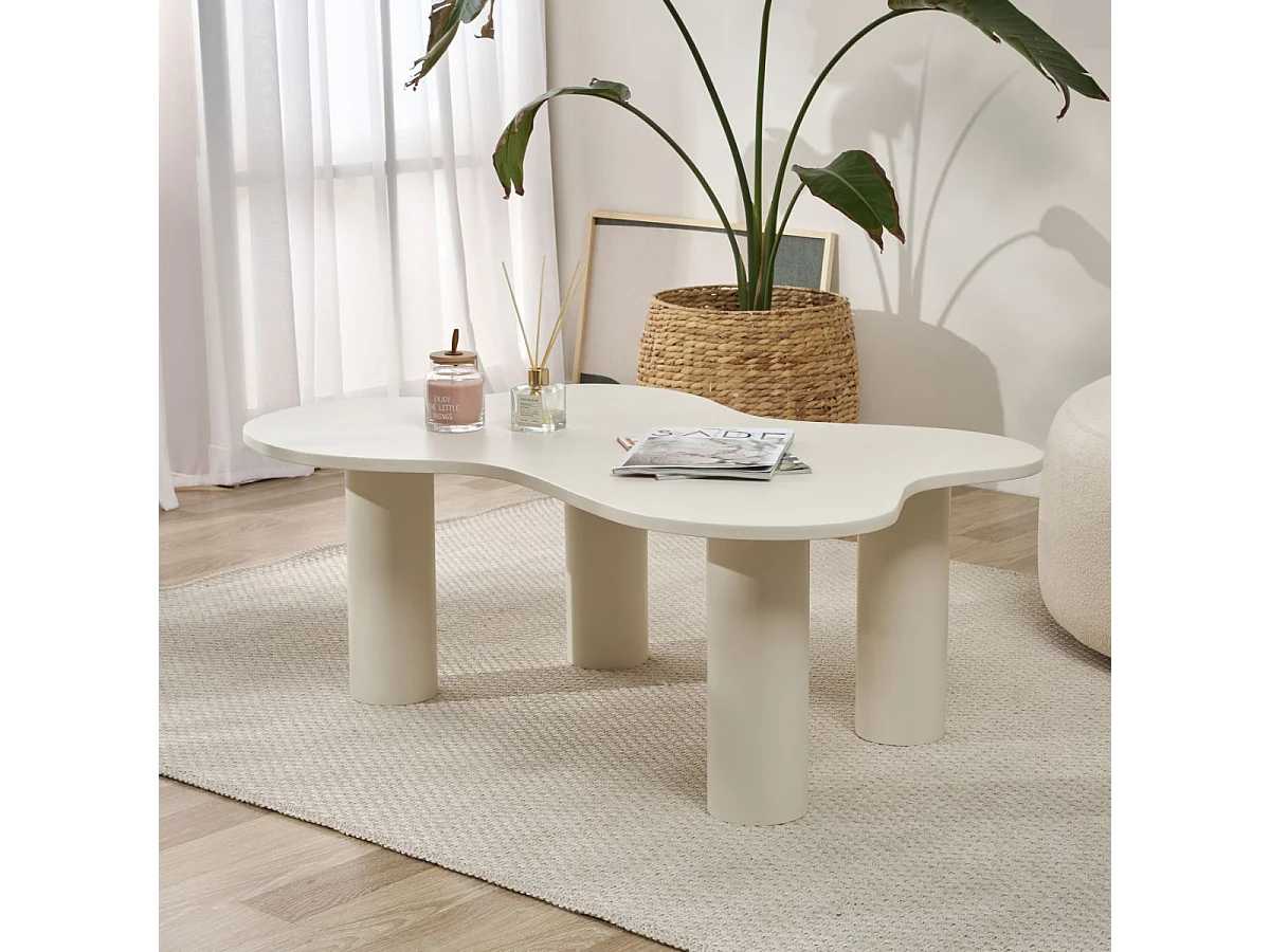 Table basse avec plateau forme organique crème BLOOM