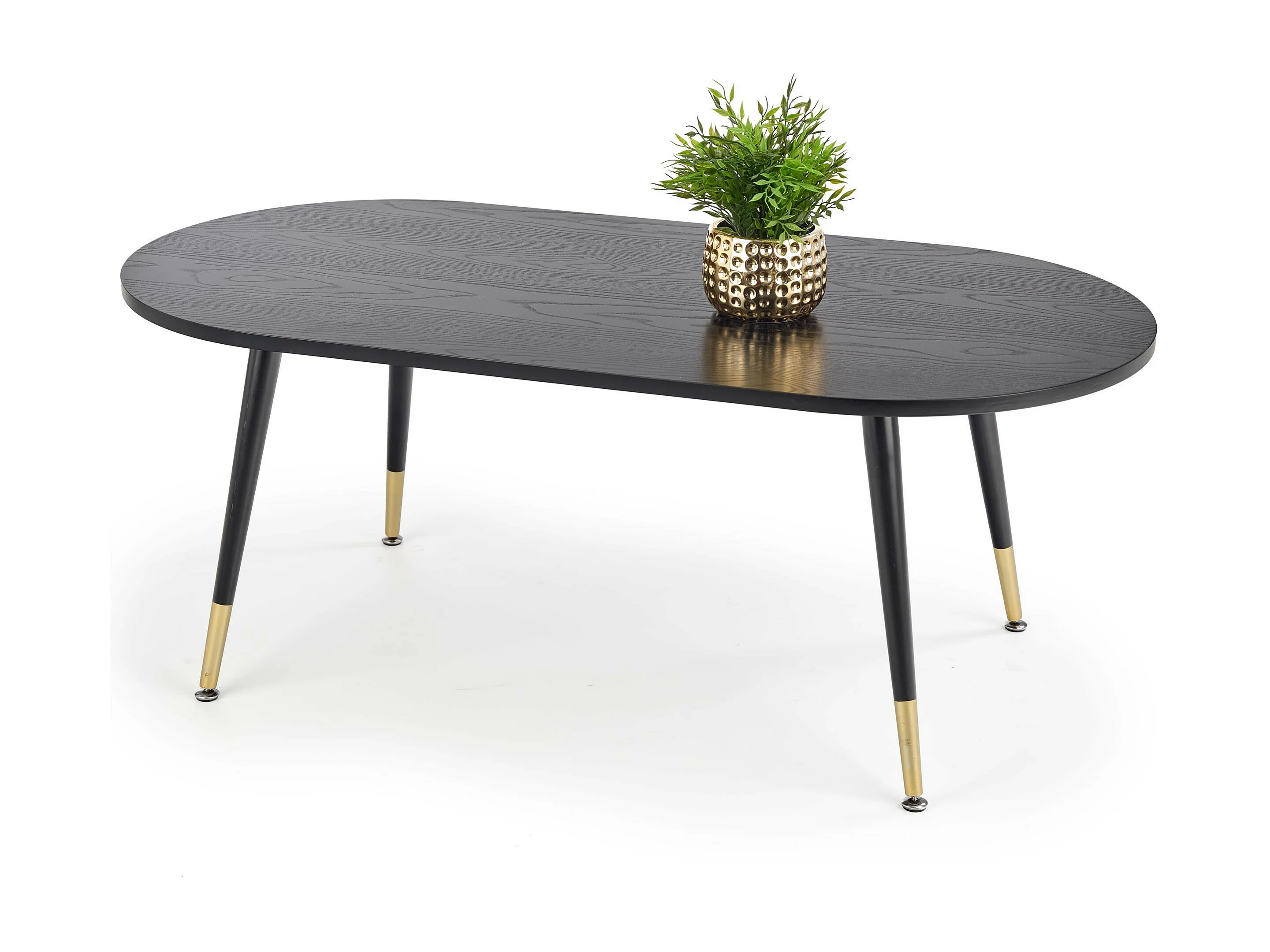Table basse avec plateau noir et pieds en acier noir et doré Lady