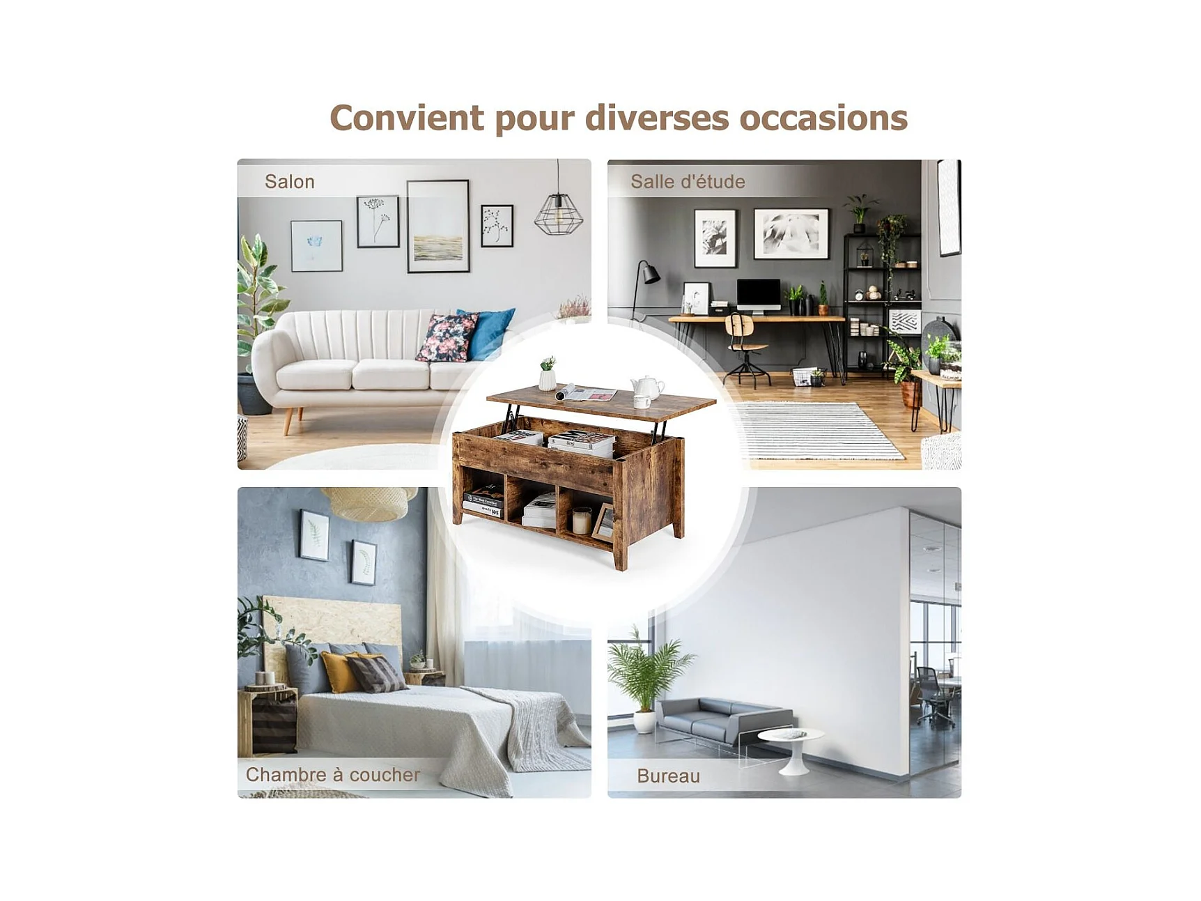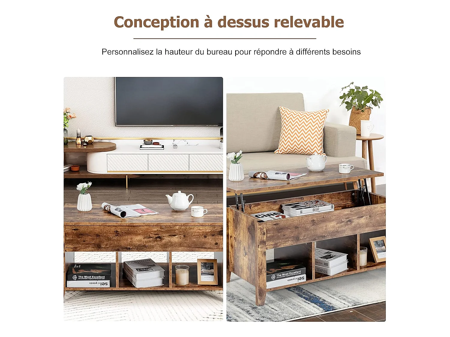 Table basse relevable Chêne marron 90x44,5x45 cm Bois d'ingénierie OFR69865 BonneVie Meuble