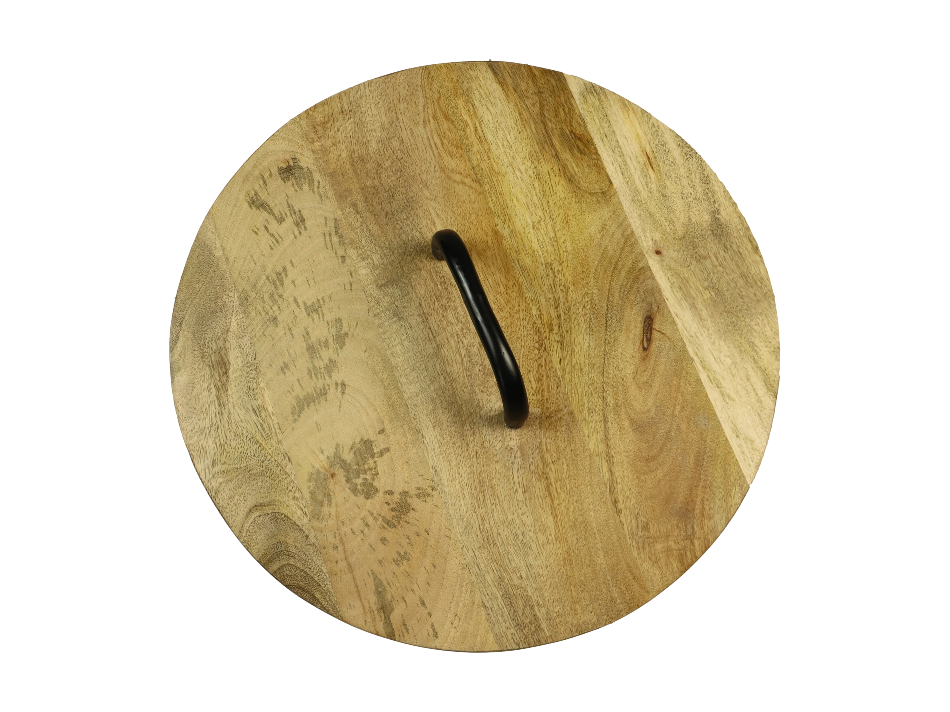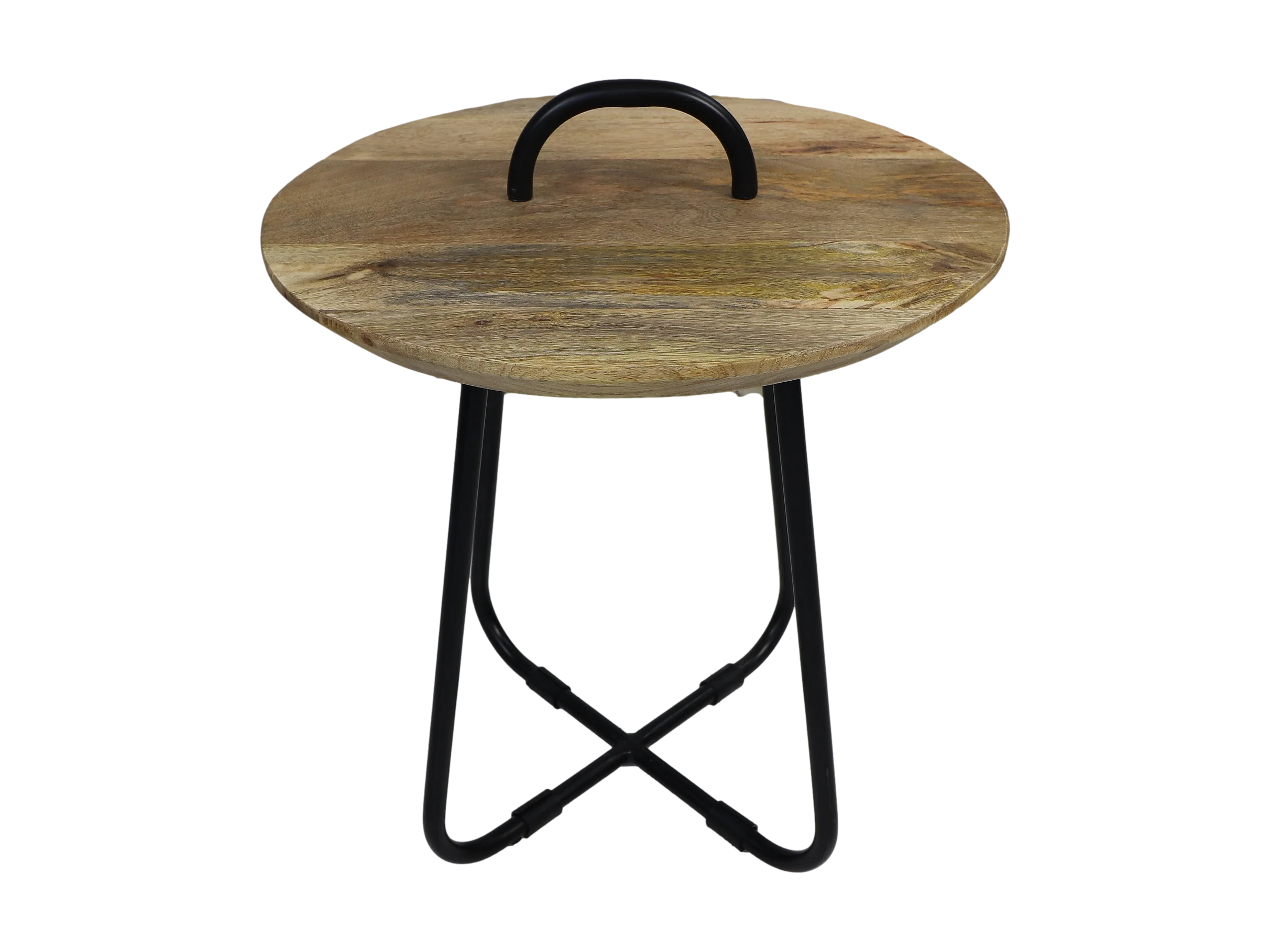 Table basse avec poignée - ø45x55 - Naturel-noir - Bois de manguier-métal