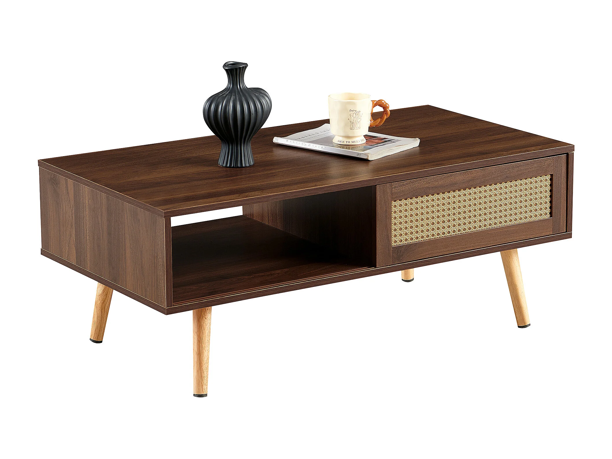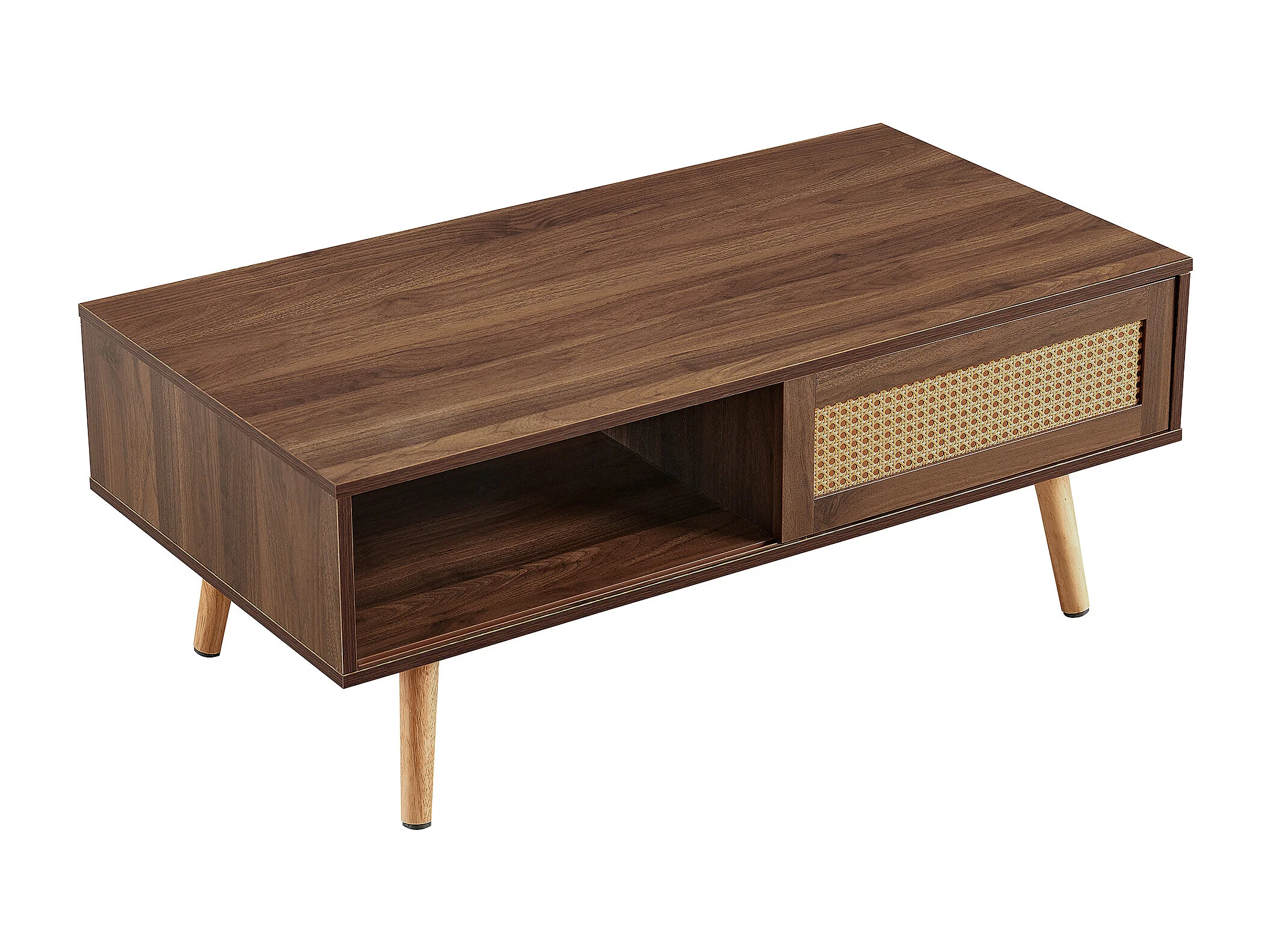 Table basse avec porte coulissante , couleurs bois marron 105x55x41.5 cm