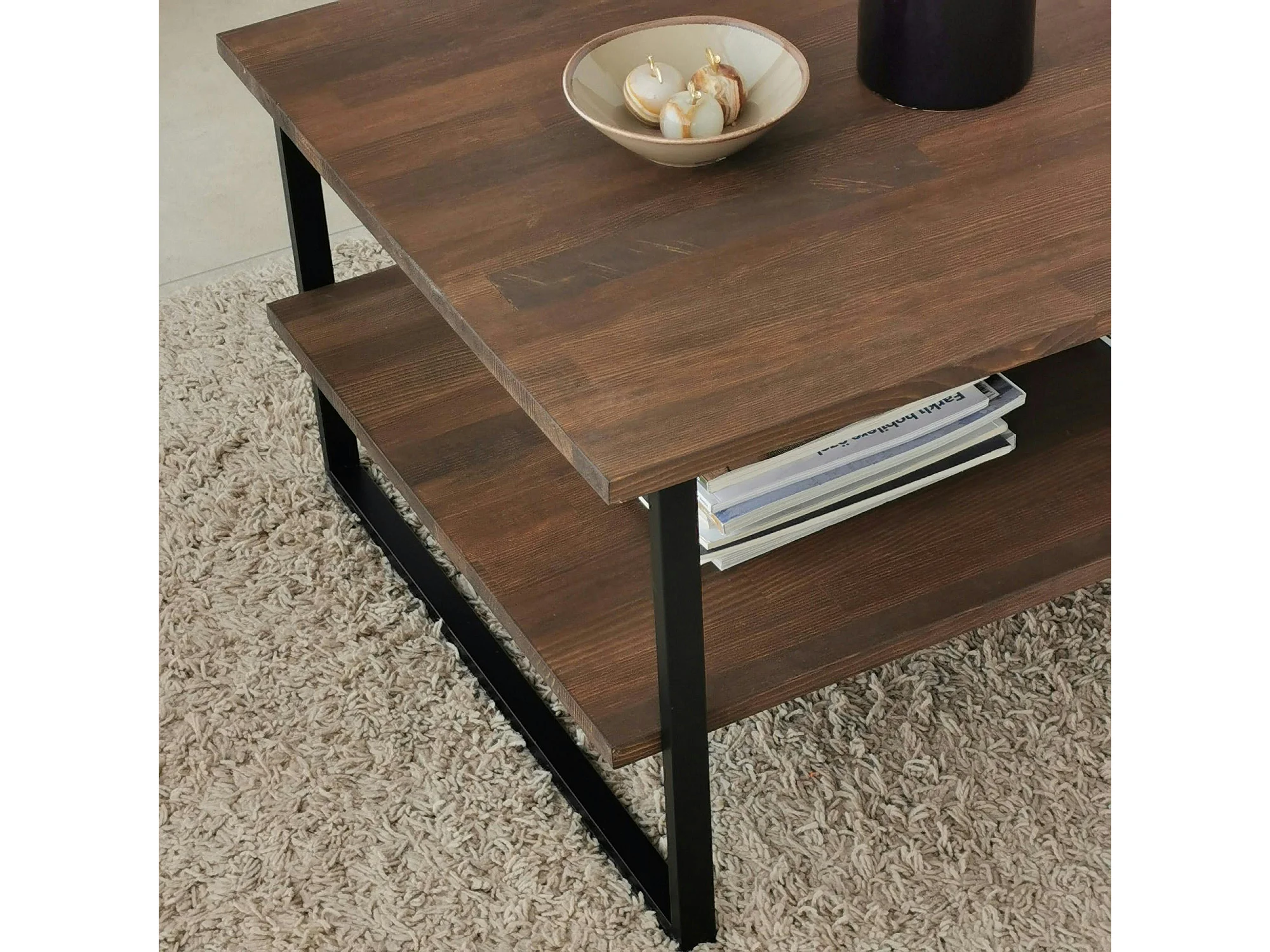 Table basse avec rangement - bois foncé et métal OTRENTO