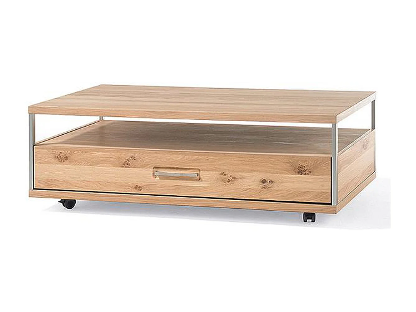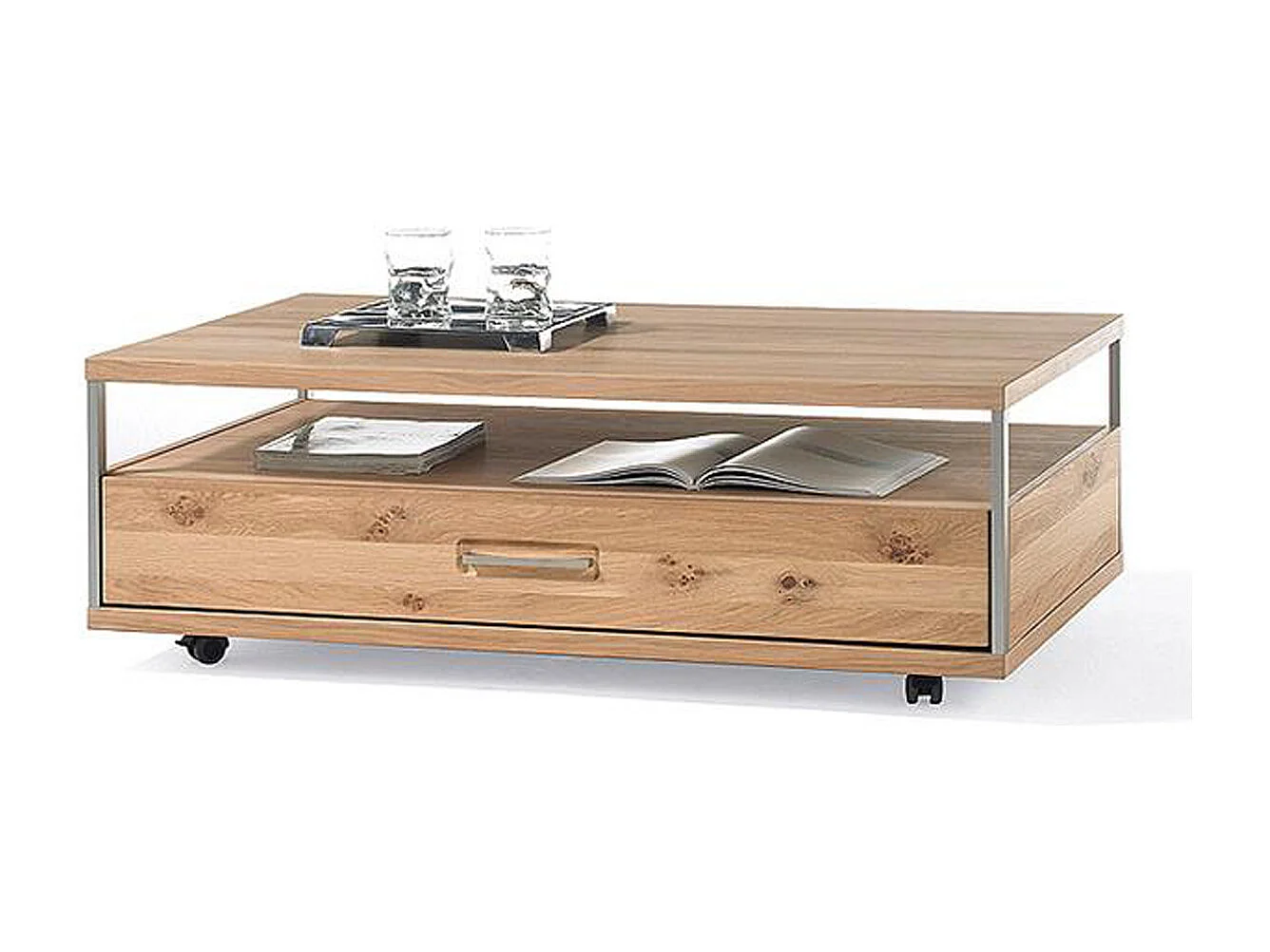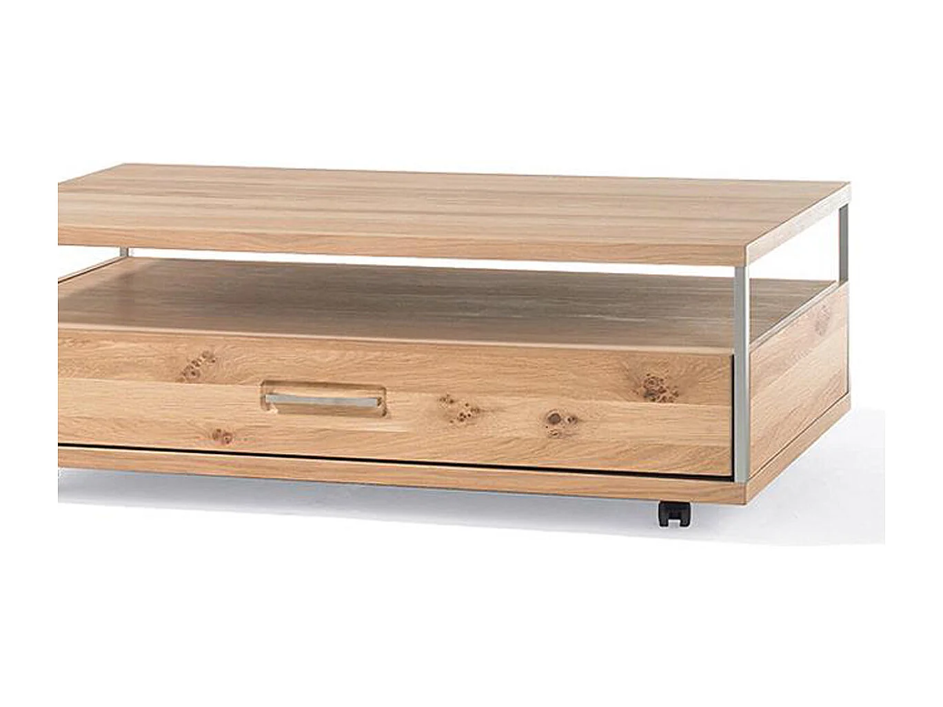 Table basse avec rangements en chêne massif balnchi - L.115 x H.39 x P.70 cm