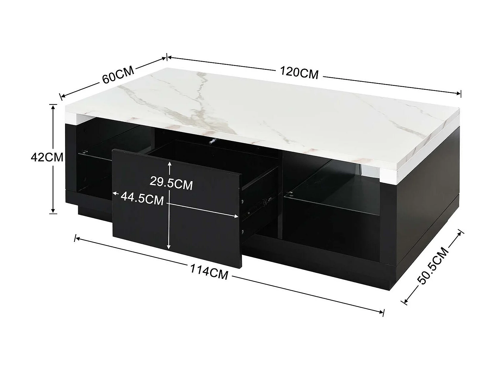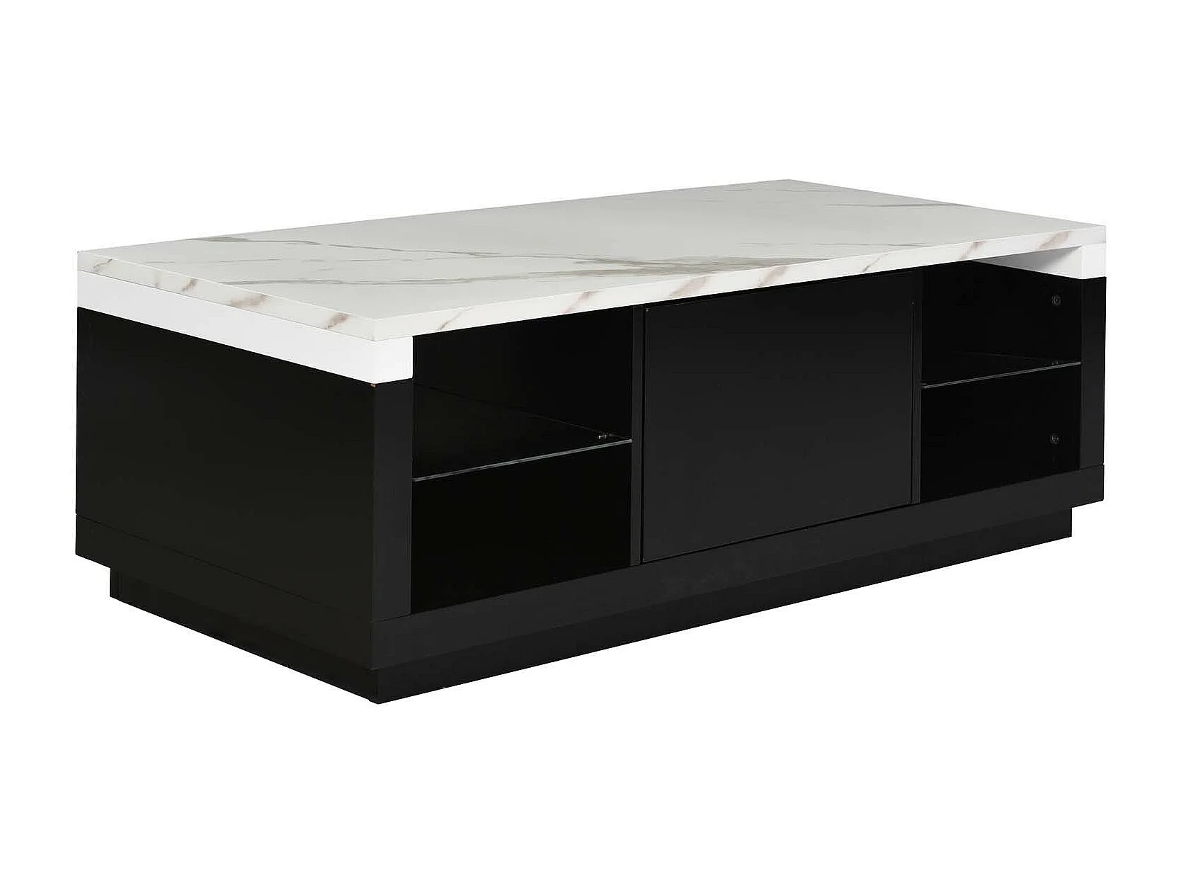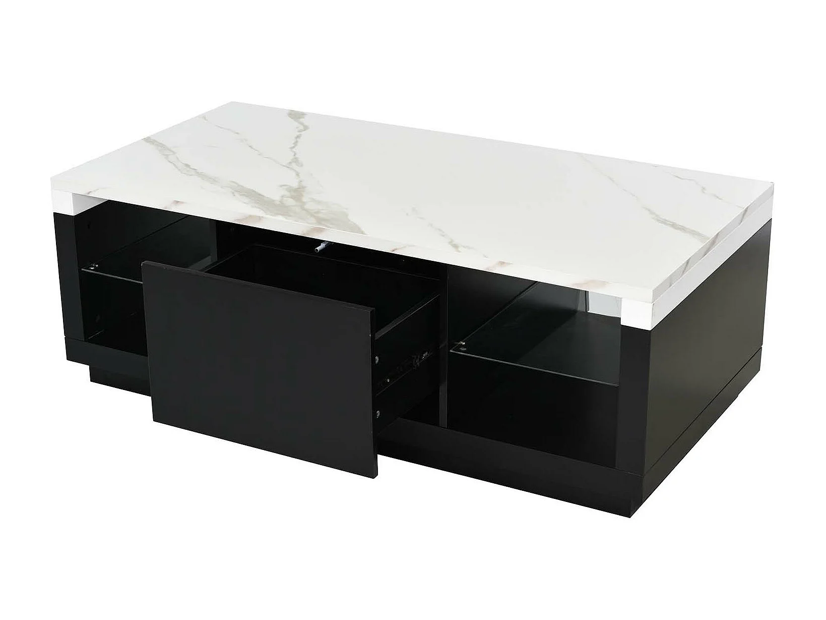 Table basse avec tiroir et étagère en verre - effet marbre exquise - noir