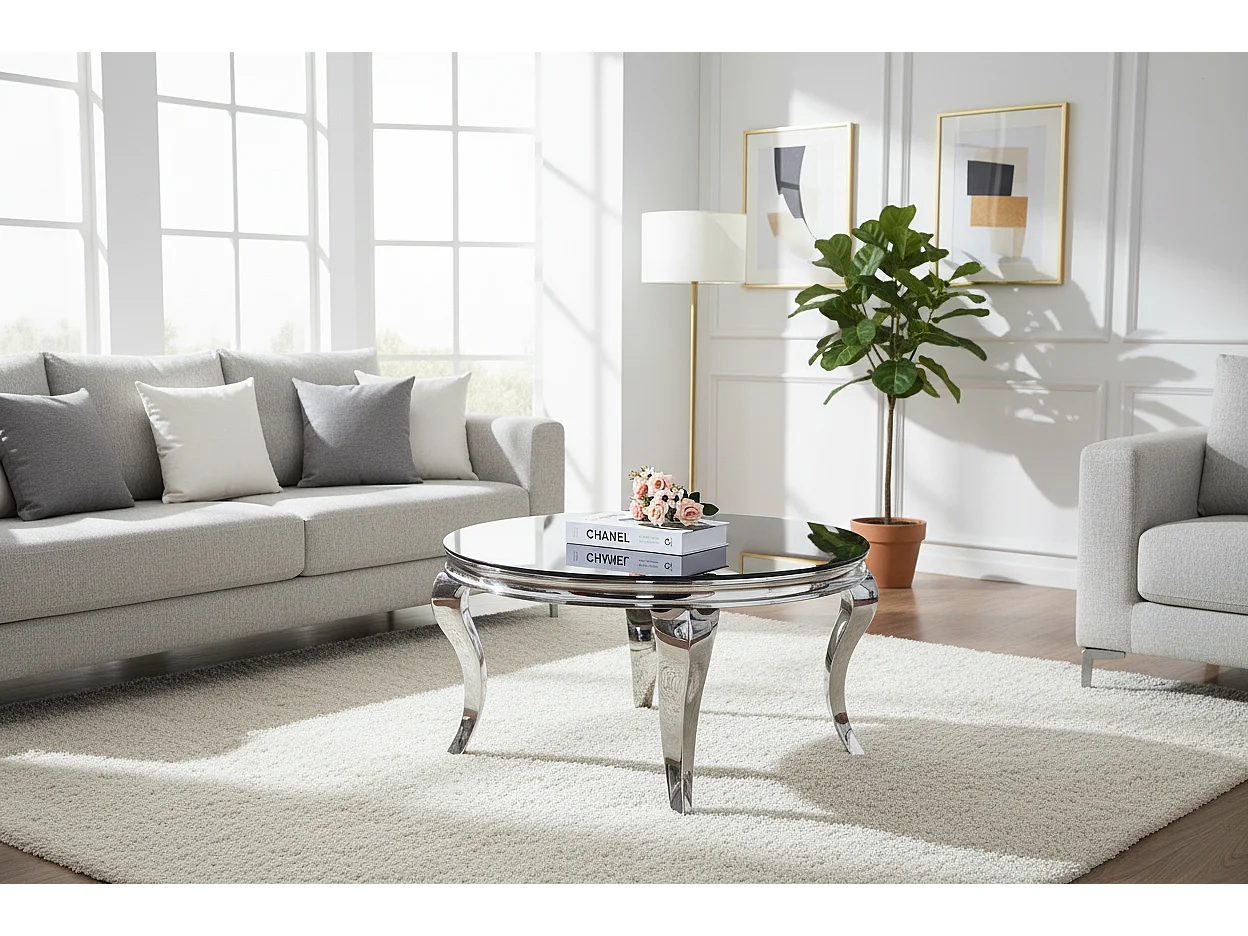 Table Basse BAROQUE Ronde Plateau Verre Trempé Noir Structure Chrome D80x45cm