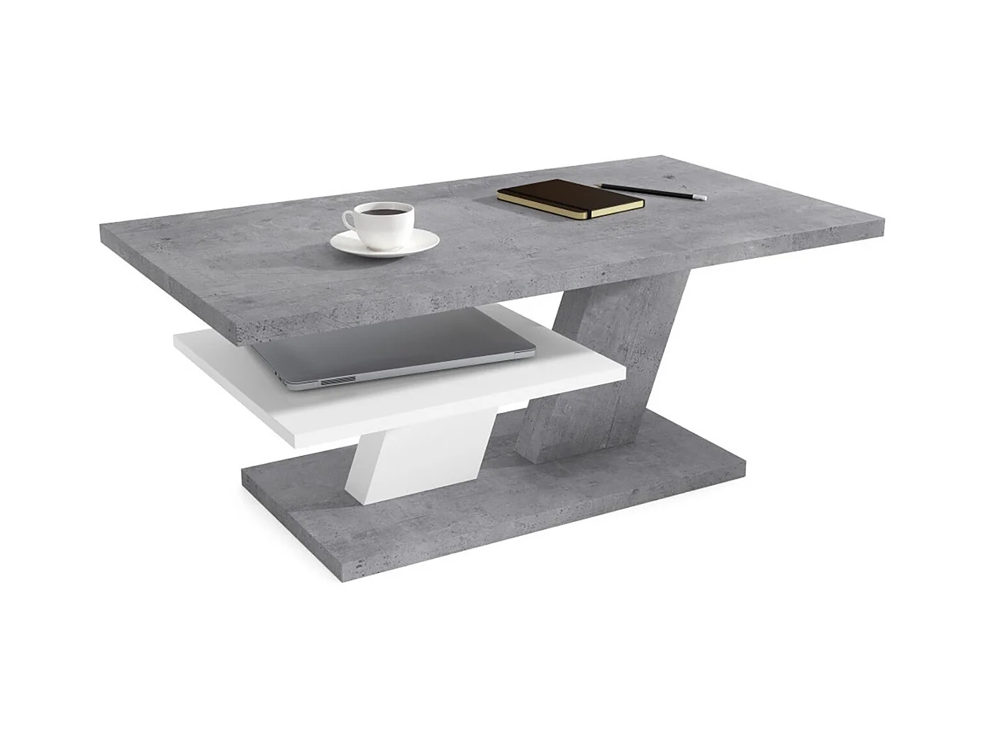 TABLE BASSE BELVEDERE BETON 110 CM AVEC ETAGERE BLANC