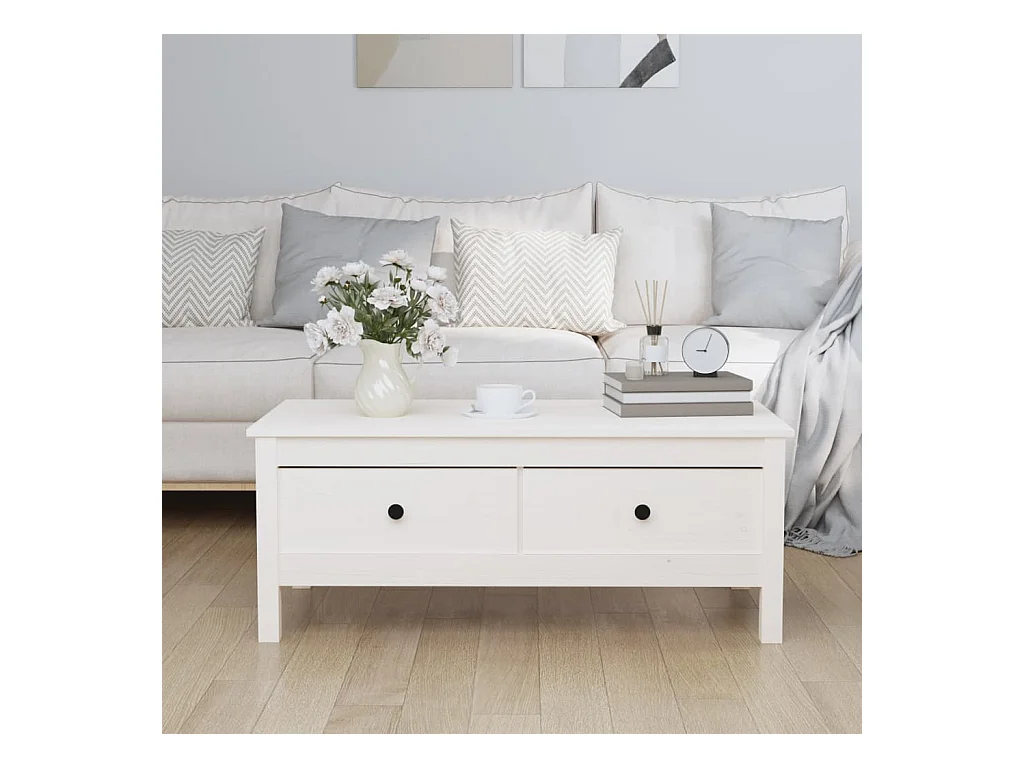 Table basse Blanc 100x50x40 cm Bois massif de pin