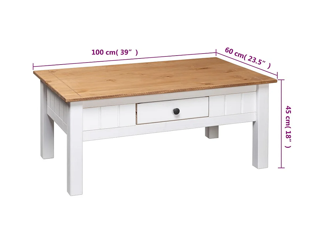Table basse Blanc 100x60x45 cm Pin massif Assortiment Panama