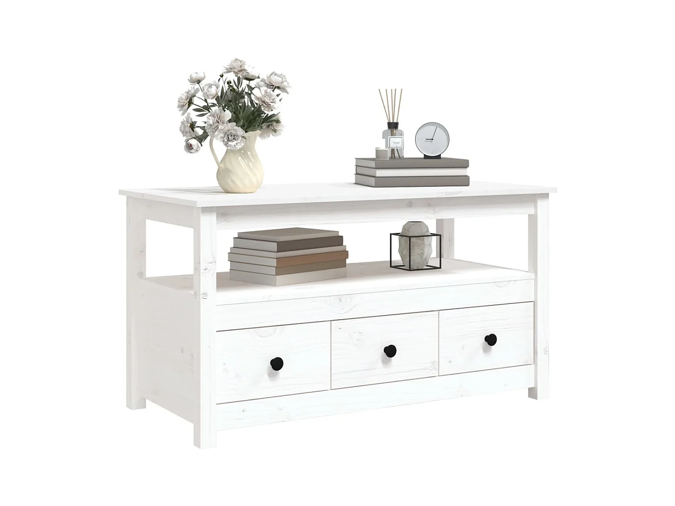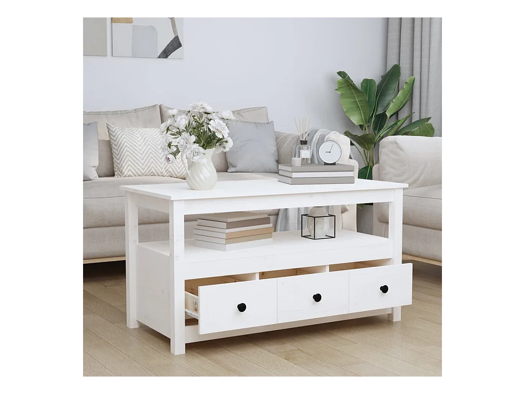 Table basse Blanc 102x49x55 cm Bois massif de pin