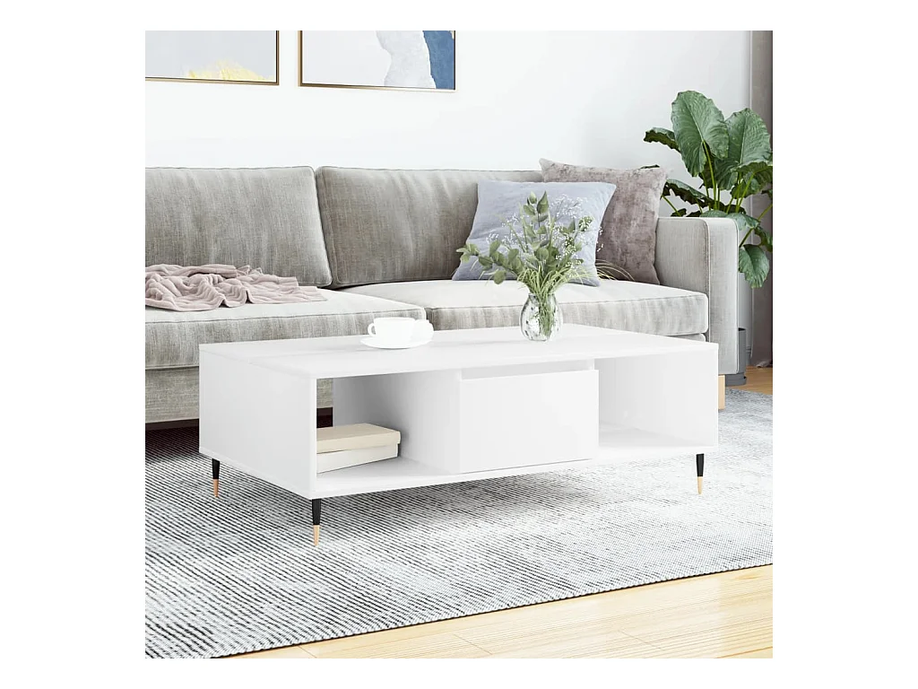Table basse blanc 104x60x35 bois d'ingénierie