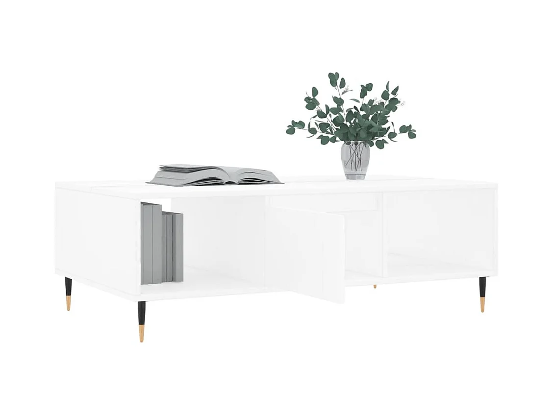 Table basse blanc brillant 104x60x35 bois d'ingénierie