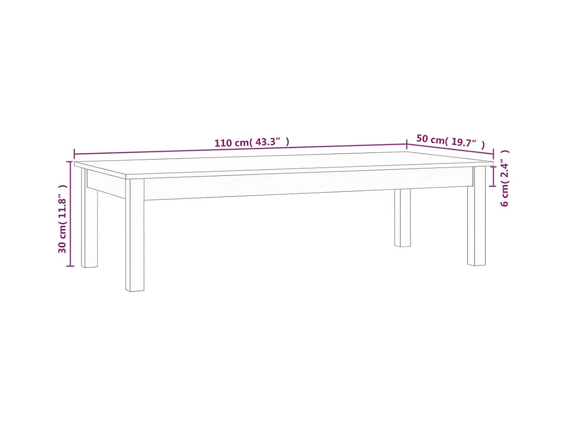 Table basse Blanc 110x50x30 cm Bois massif de pin OFR71736 BonneVie Meuble