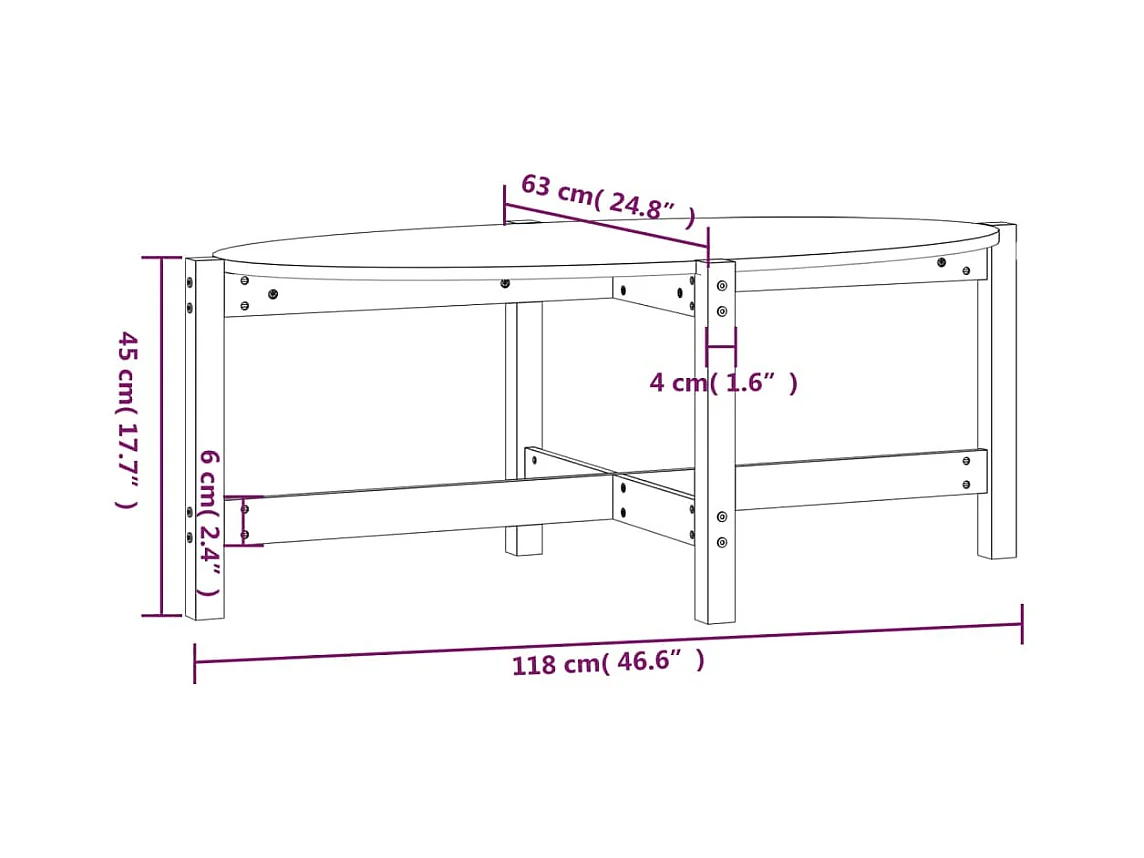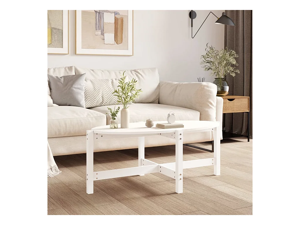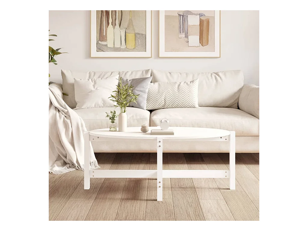 Table basse Blanc 118x63x45 cm Bois massif de pin OFR70332 BonneVie Meuble