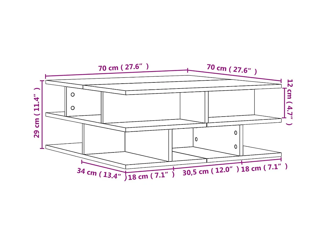 Table basse blanc 70x70x29 cm bois d'ingénierie