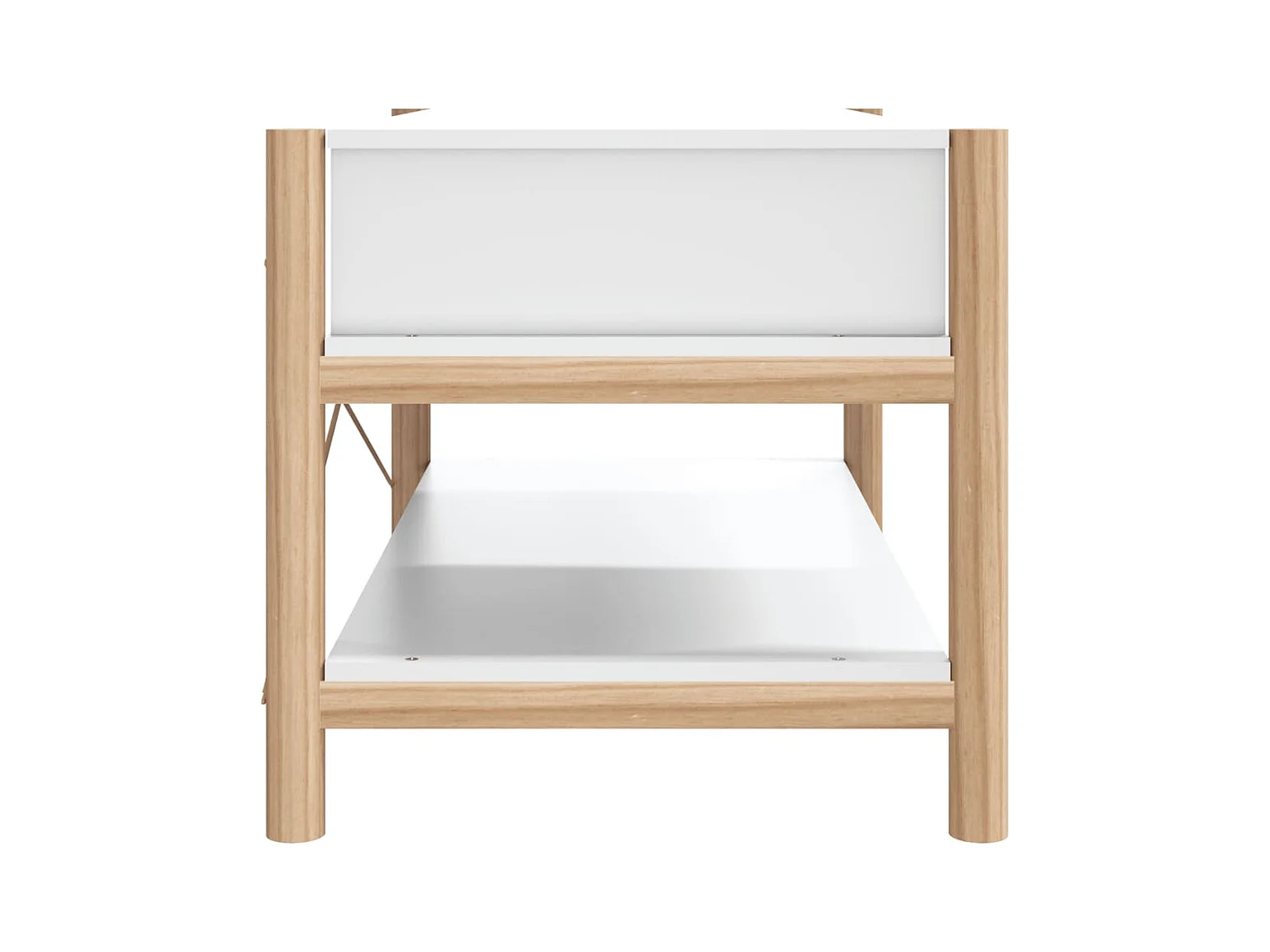 Table basse TEQUILA table de salon rectangulaire style mexicain, avec 2 tiroirs et 1 étagère inférieure, en pin massif blanc et brun