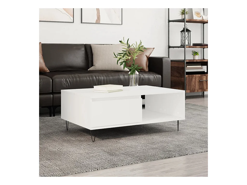 Table basse blanc 104x60x35 cm bois d'ingénierie