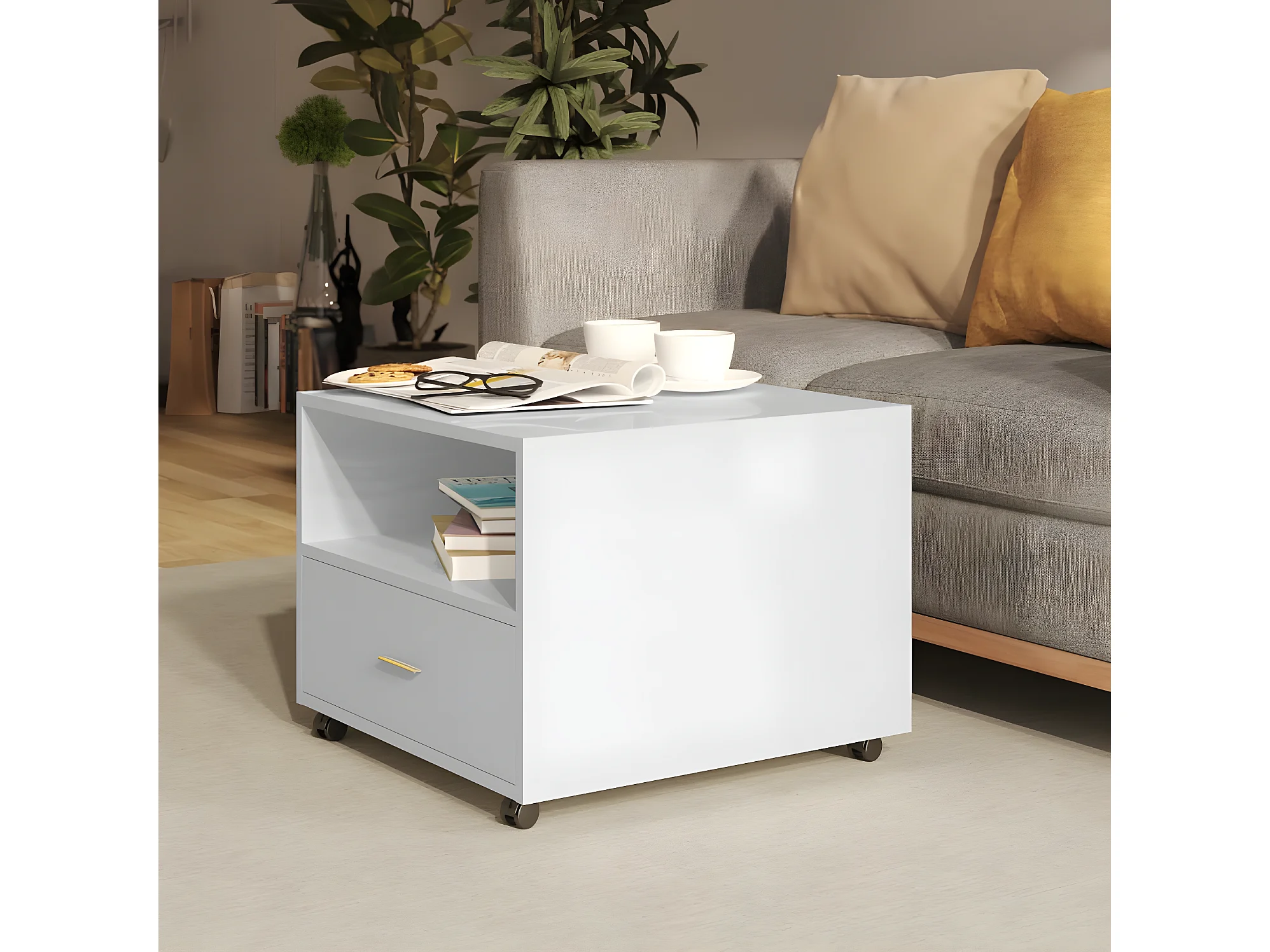 Table basse blanc brillant 55x55x40 cm bois d'ingénierie