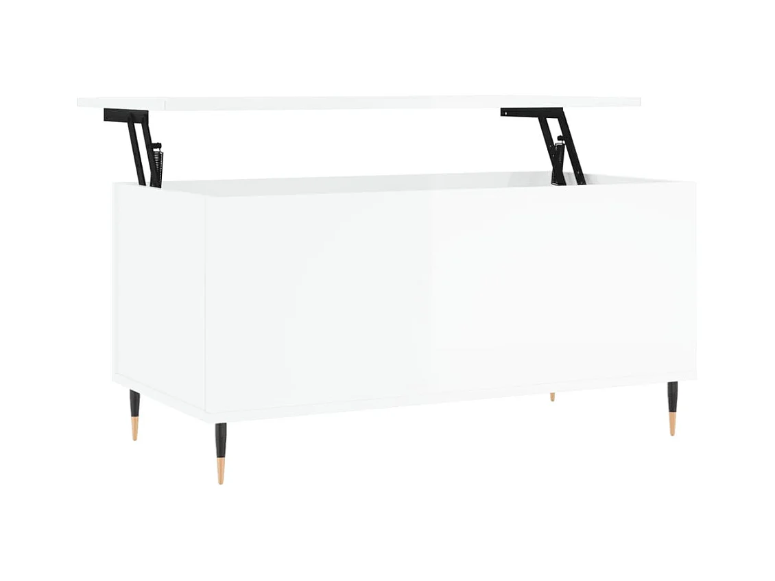 Table basse relevable Blanc brillant 90x44,5x45 cm Bois d'ingénierie OFR39429 BonneVie Meuble