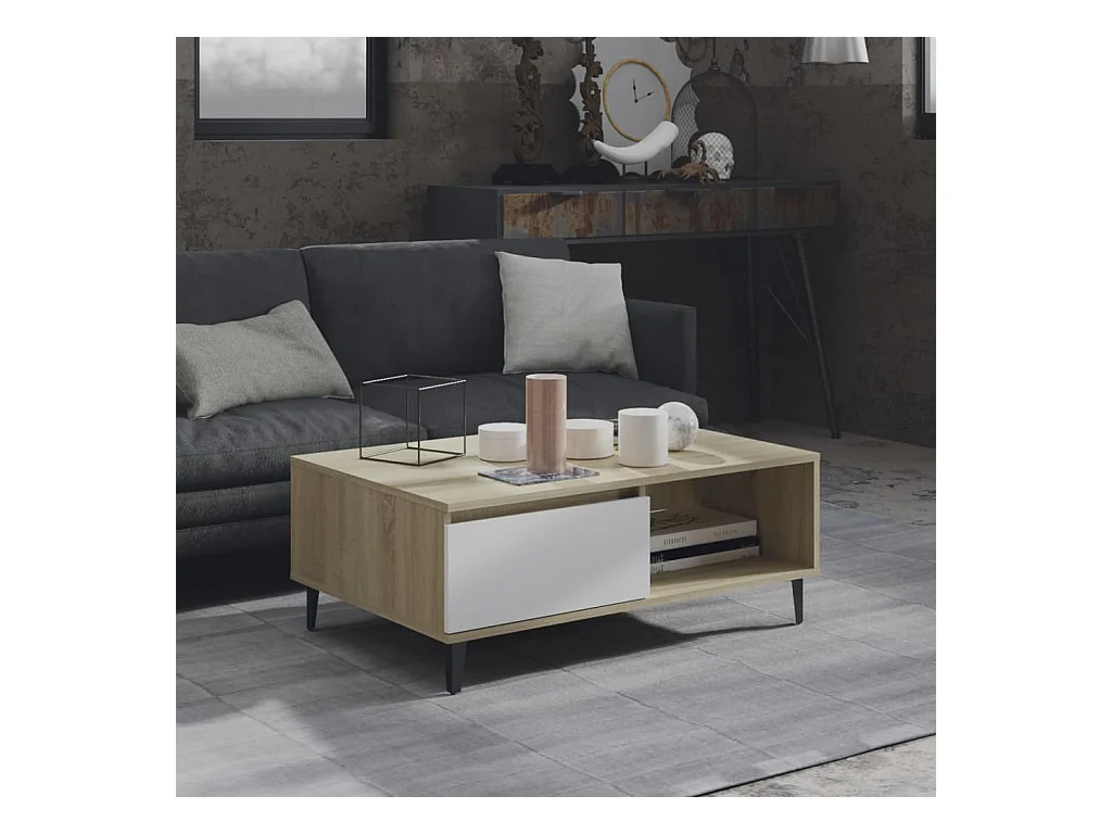 Table basse Blanc et chêne sonoma 90x60x35 2