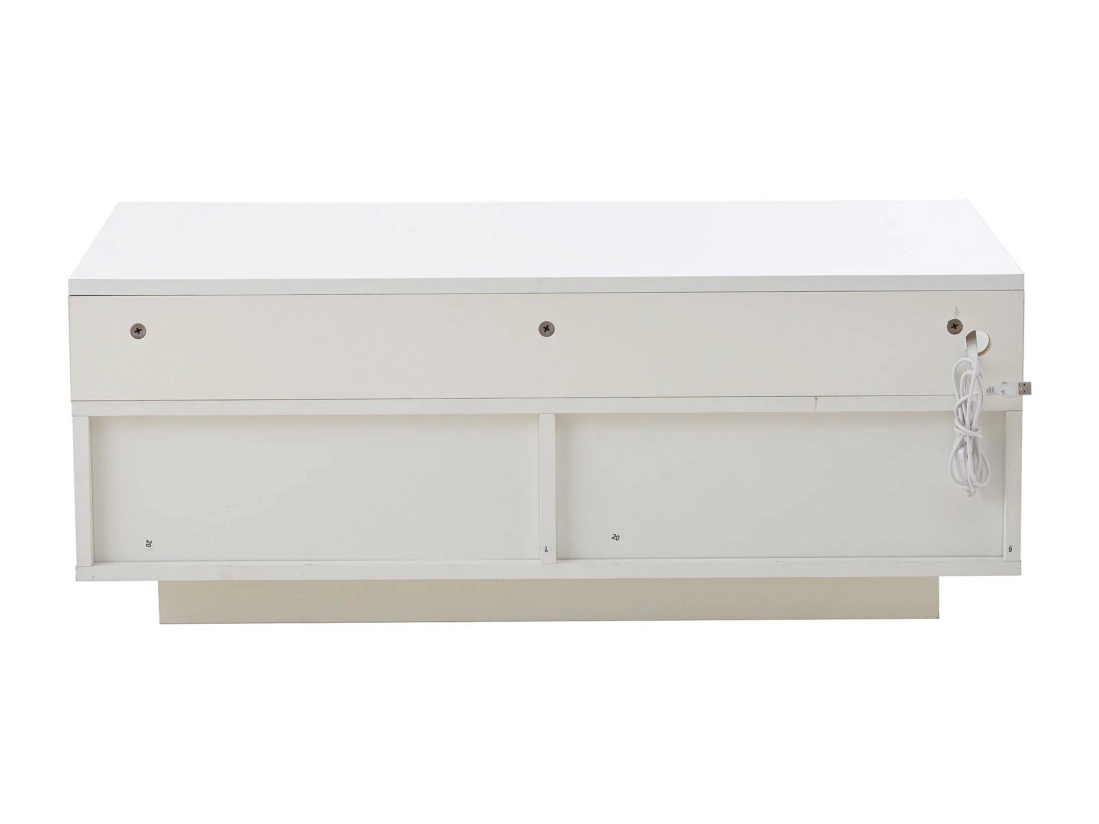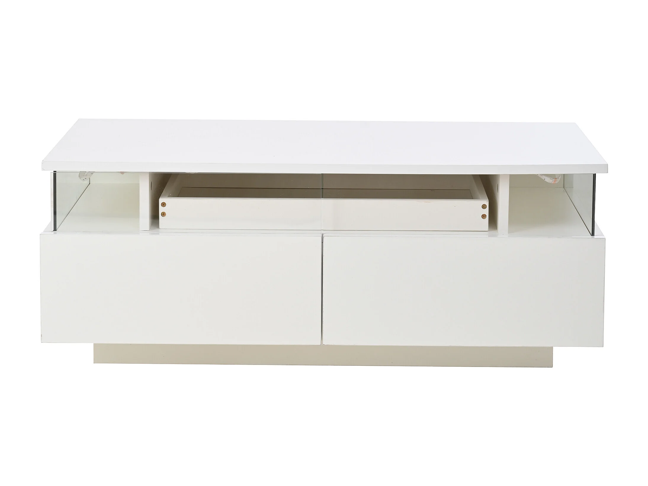 Table Basse contemporaine - avec 4 Portes, 2 tiroirs et Compartiment Ouvert, LED - blanc