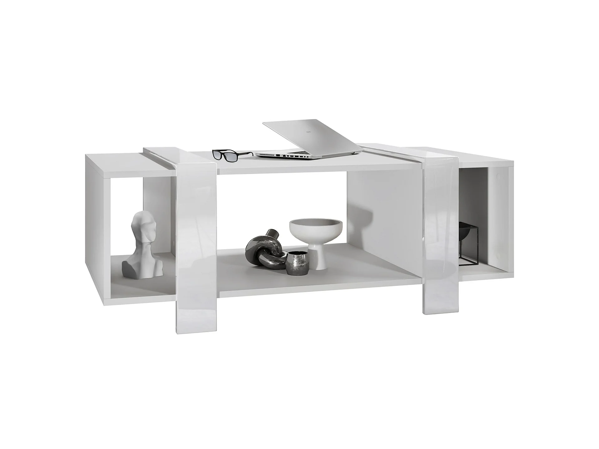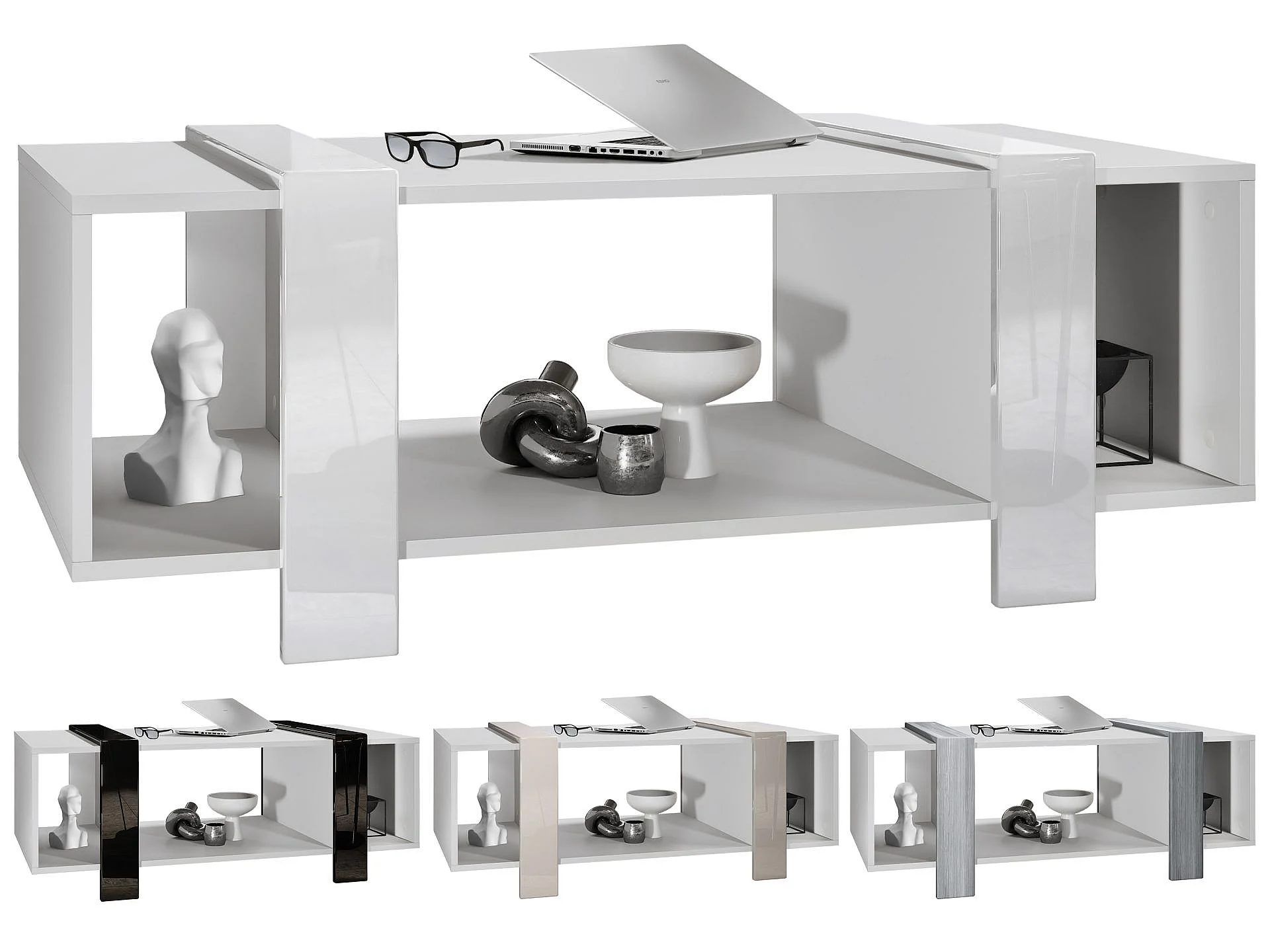 Table Basse Blanche Mat Et Bordures Laquées (lxhxp) : 110,5 X 42 X 56,5 Cm