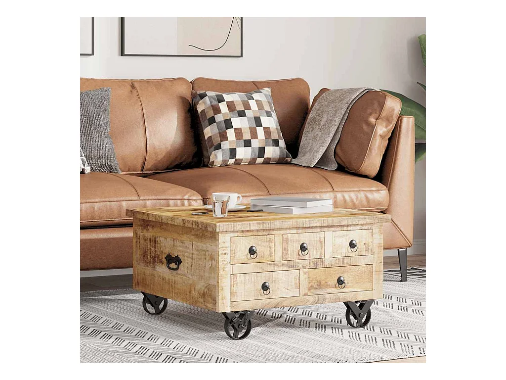 Table basse Bois de manguier brut 70 x 70 x 40 cm