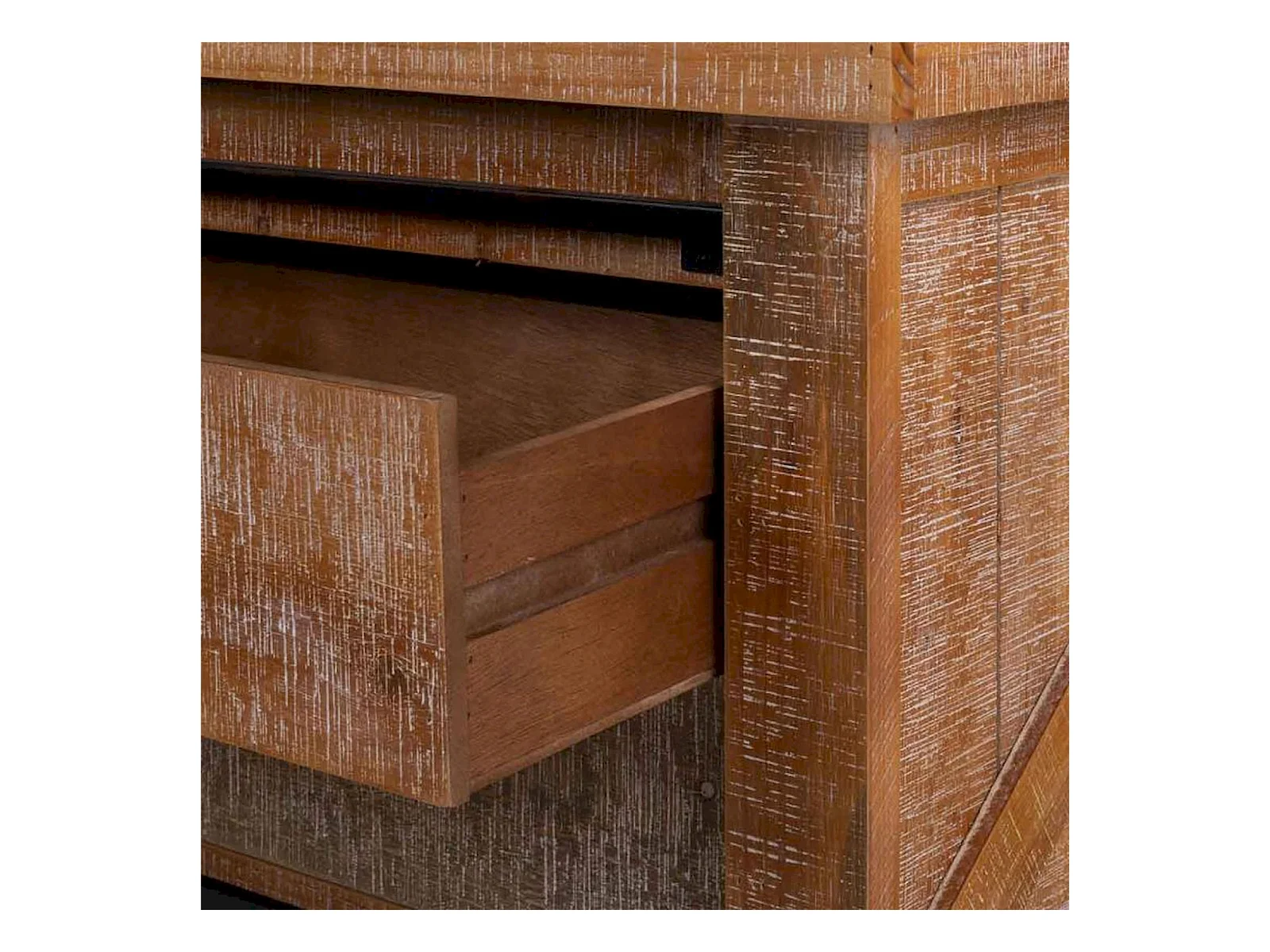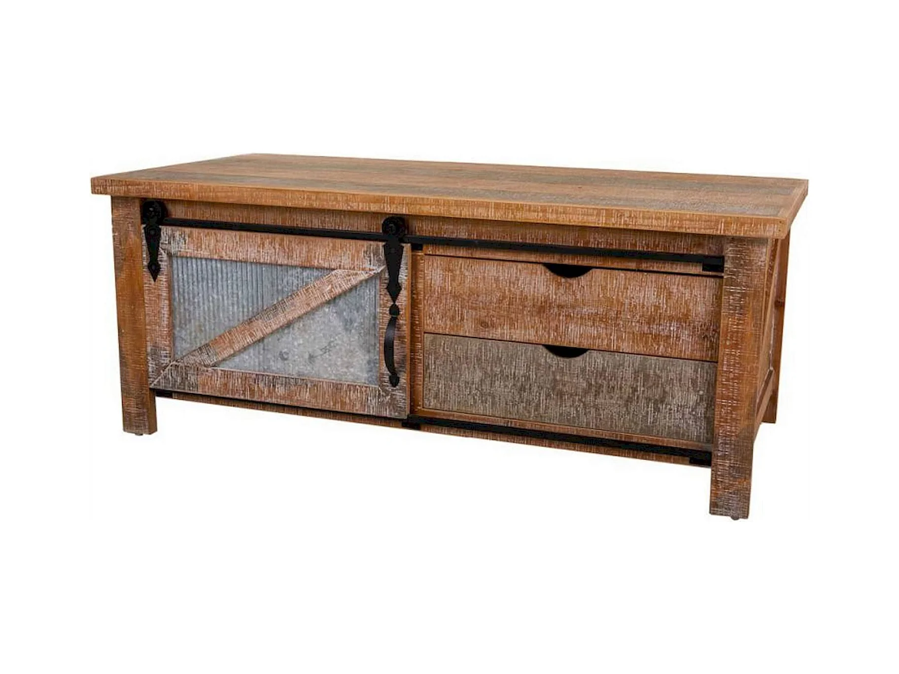 table basse bois et métal style industriel coloré avec tiroirs