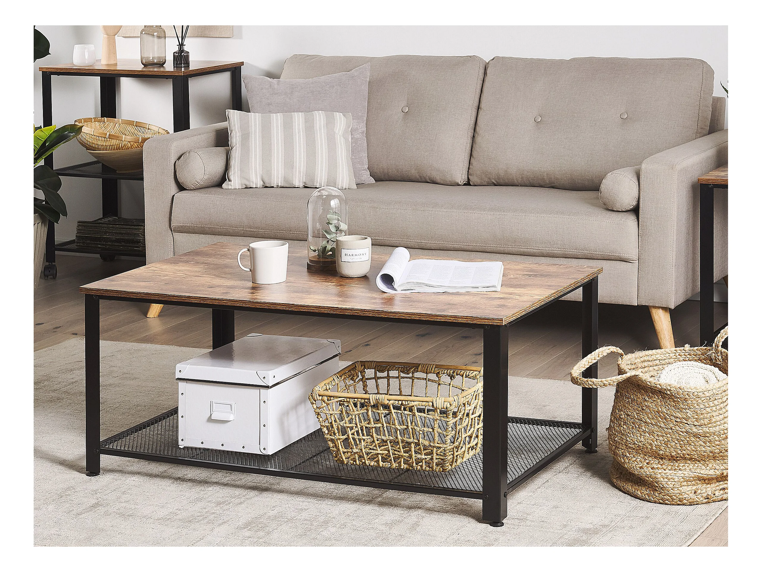 CARSON - Table Basse 1 Tiroir Effet Bois Naturel et Noir