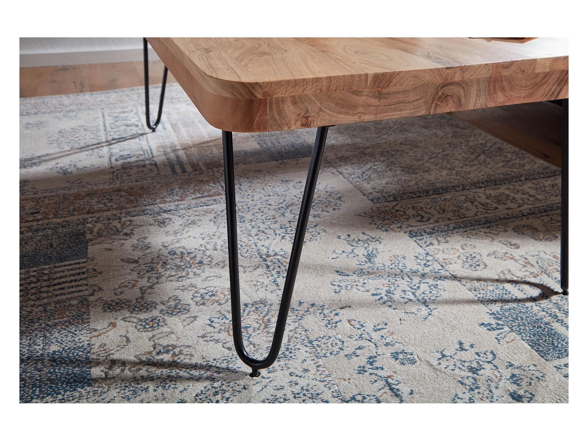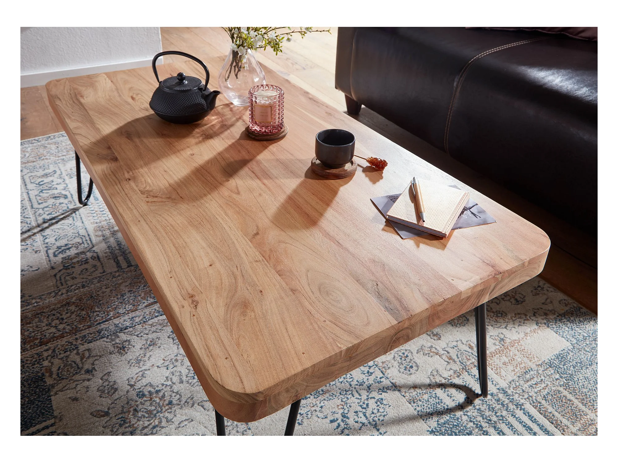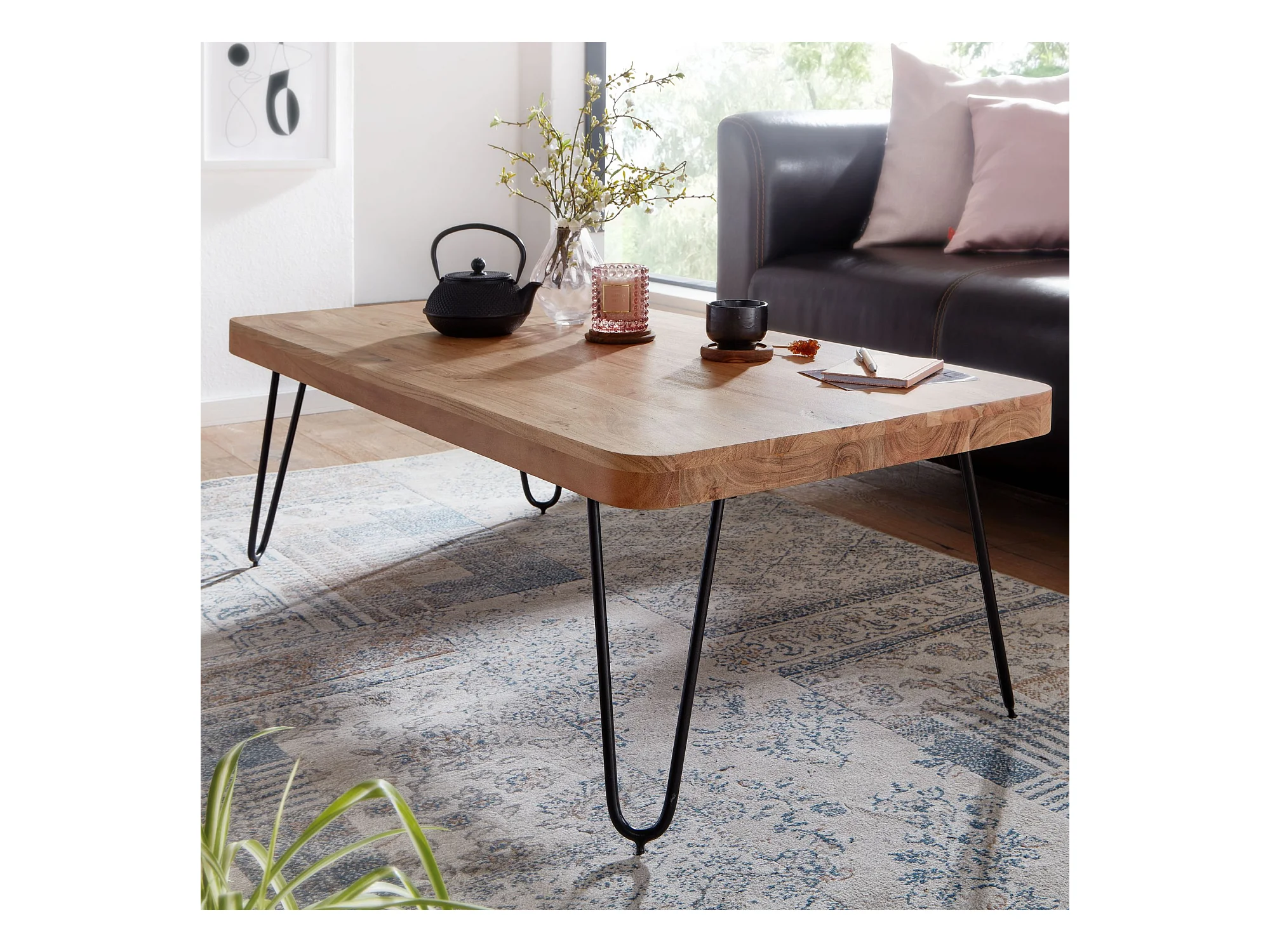 Table Basse Bois Massif Métal 115x40x60cm Table d'appoint Table de salon
