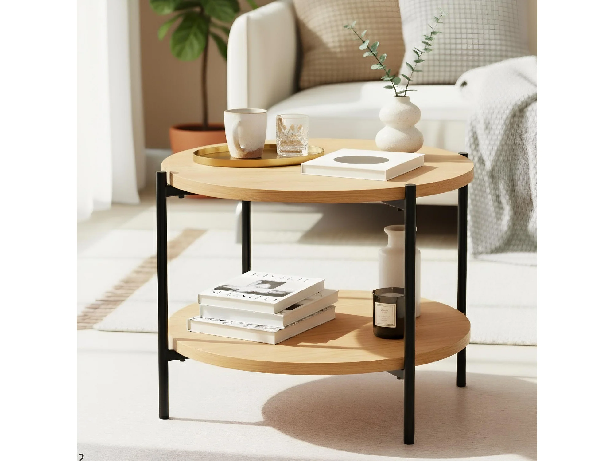 Table basse ronde moderne Landy-Couleur Naturel-Diamètre 80 cm