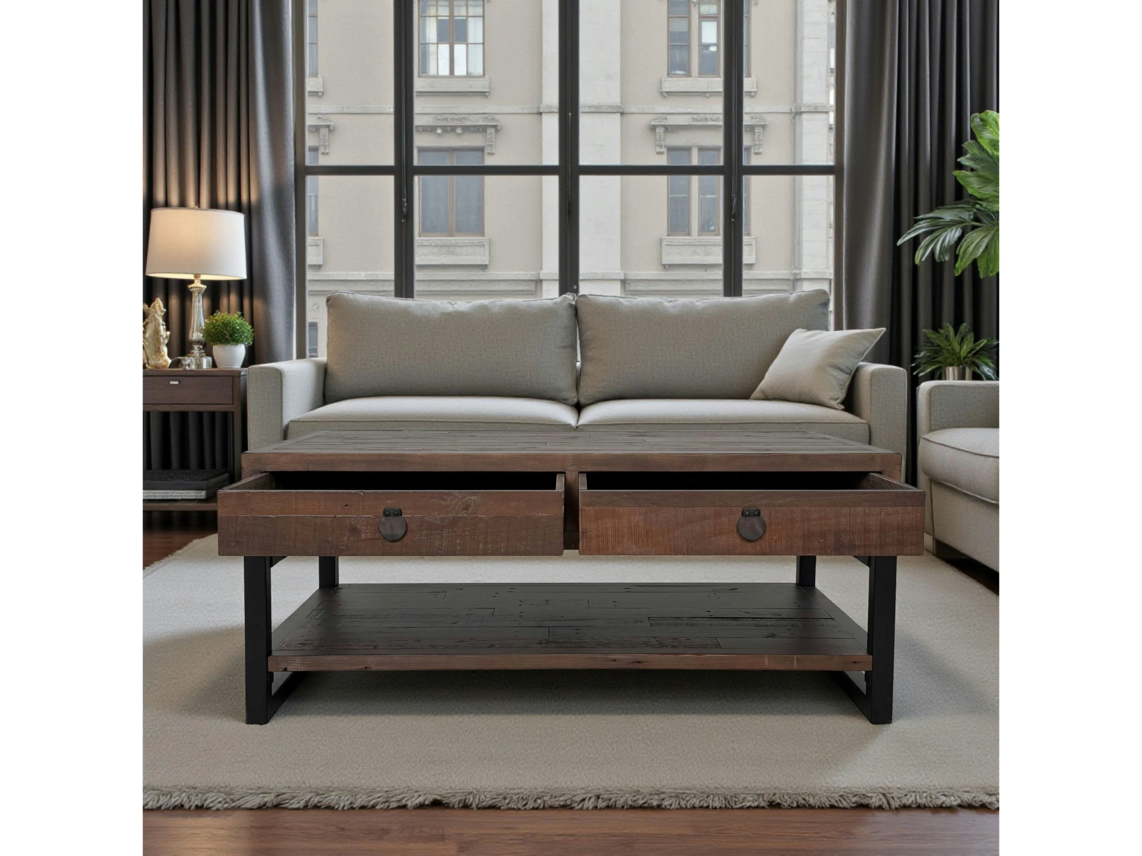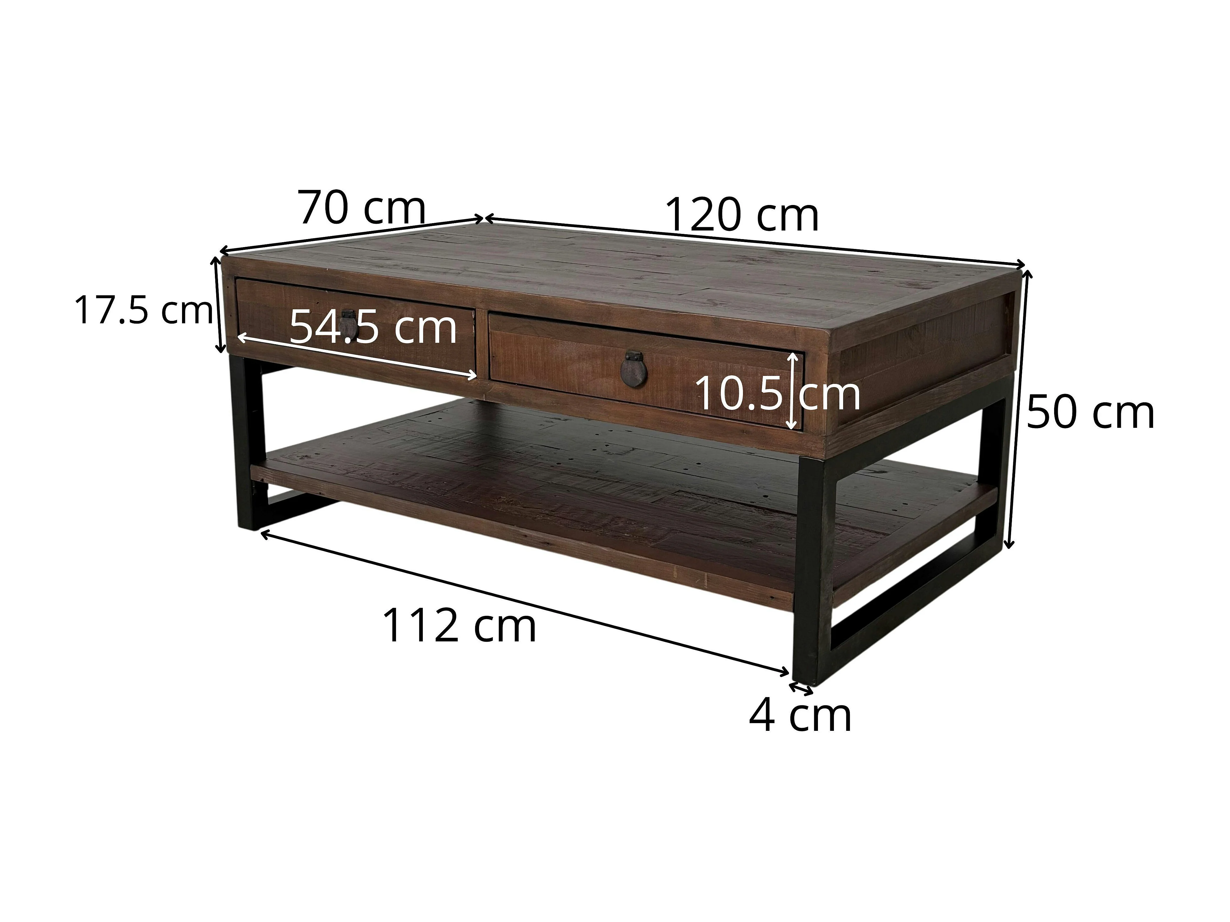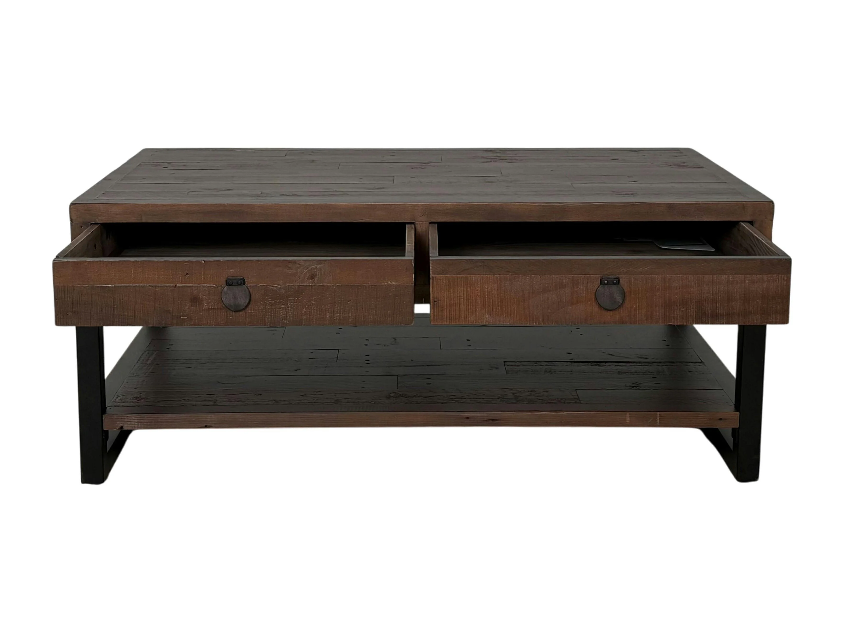 Table basse bois brun recyclé double plateau 2 tiroirs SAMOA