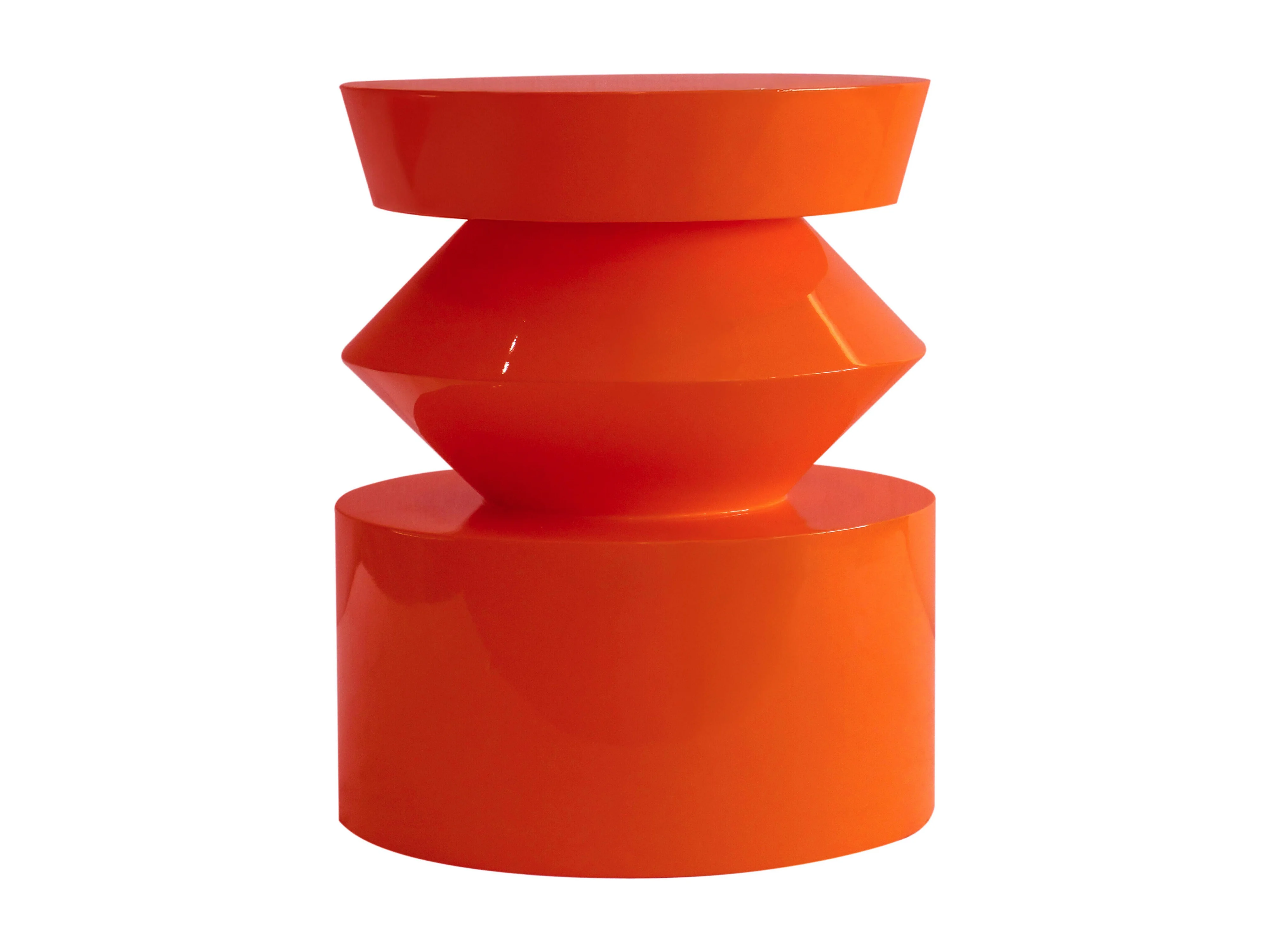 Table basse bout de canapé effet laqué orange diam 40 cm