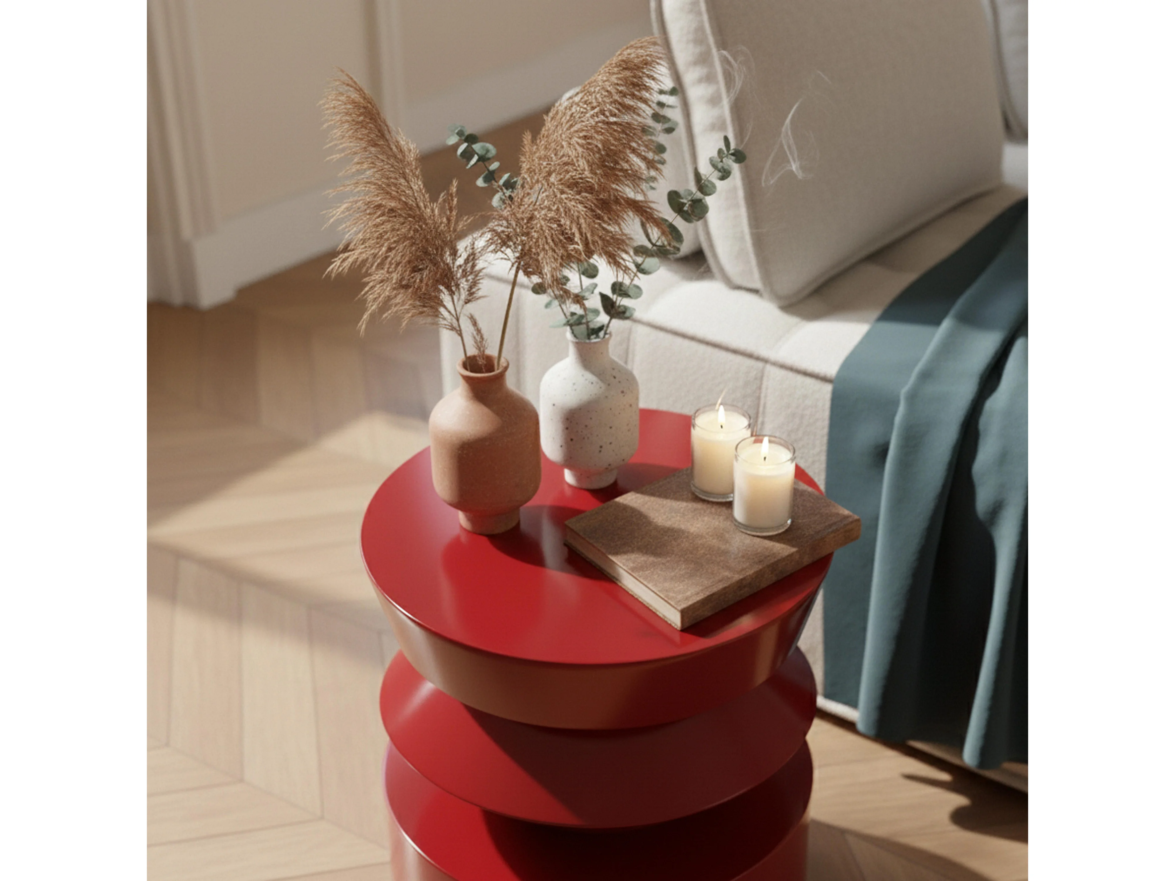 Table basse bout de canapé effet laqué rouge diam 40 cm