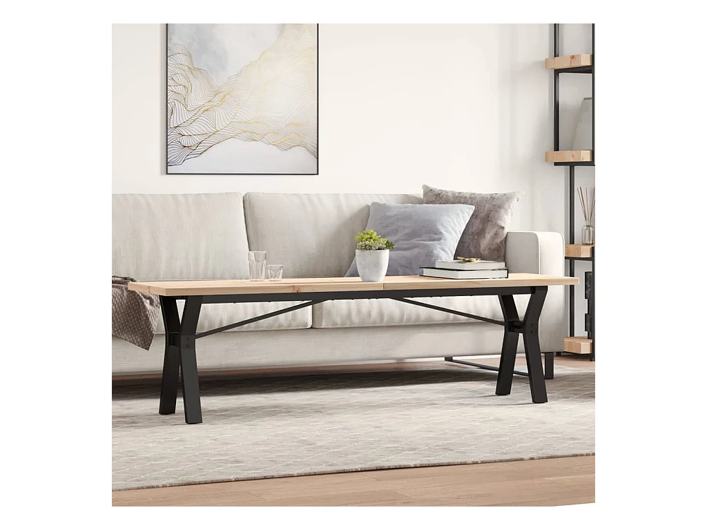 Table basse cadre en Y 160x40x45,5 cm bois de pin massif fonte FR93198