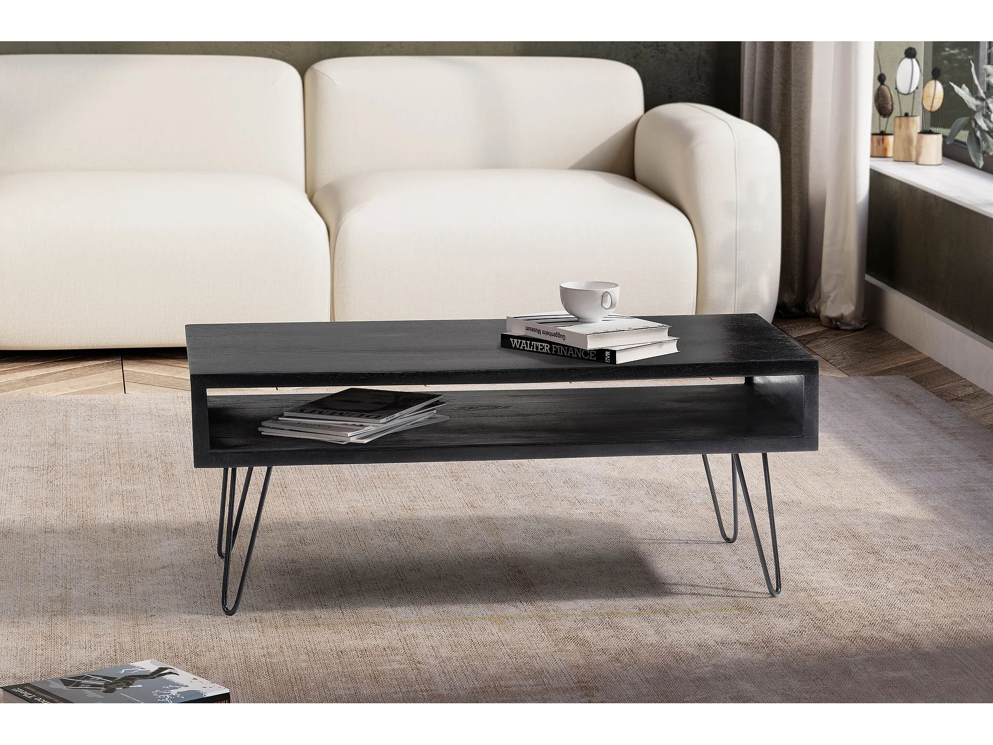Table Basse Café Salon Canapé 100 cm Bois Massif Rectangulaire Rangement