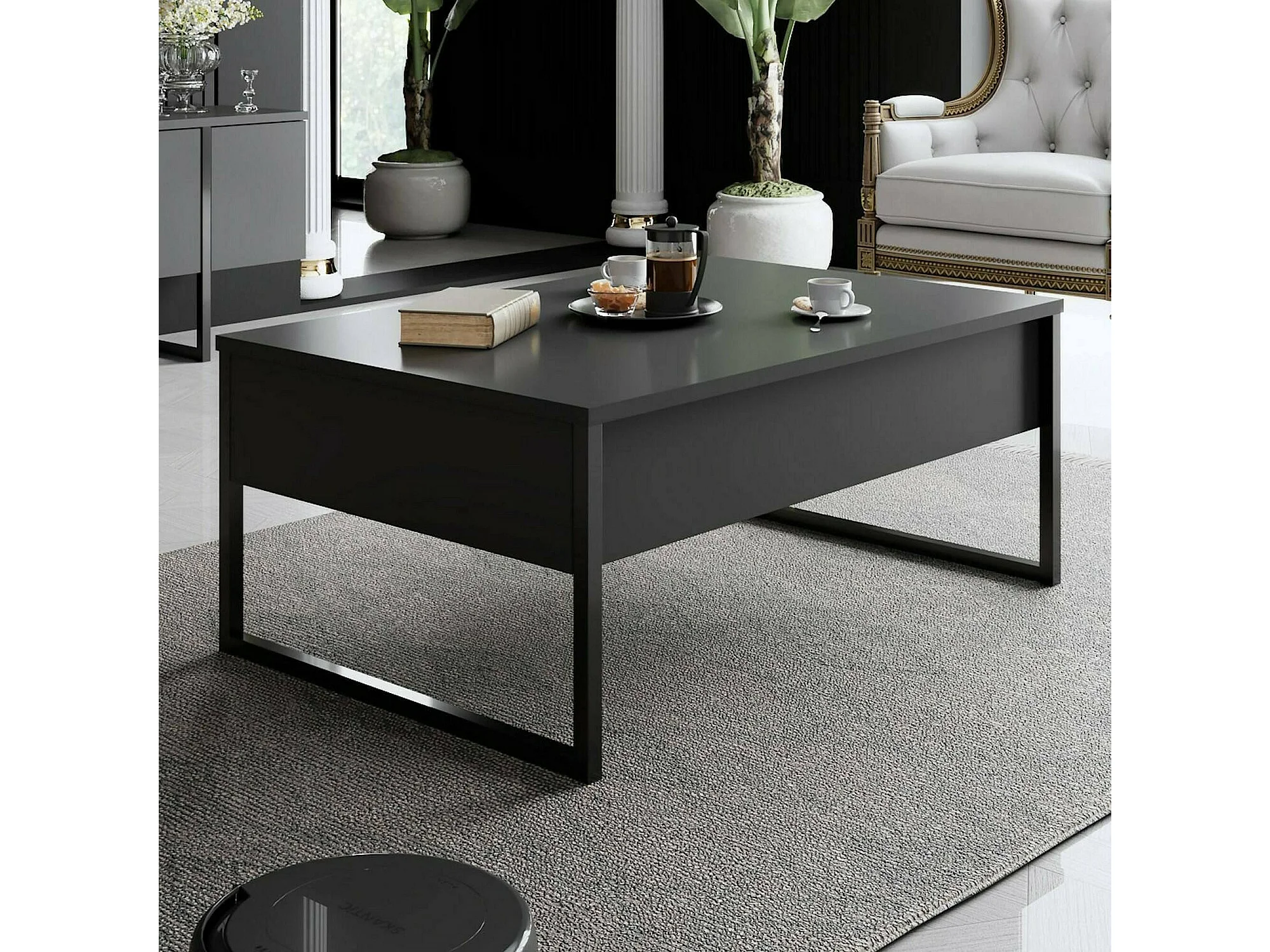 Table basse Canis, Table basse, Porte-revues pour canapé, Etagère de salon, 90x60h40 cm, Anthracite et Noir