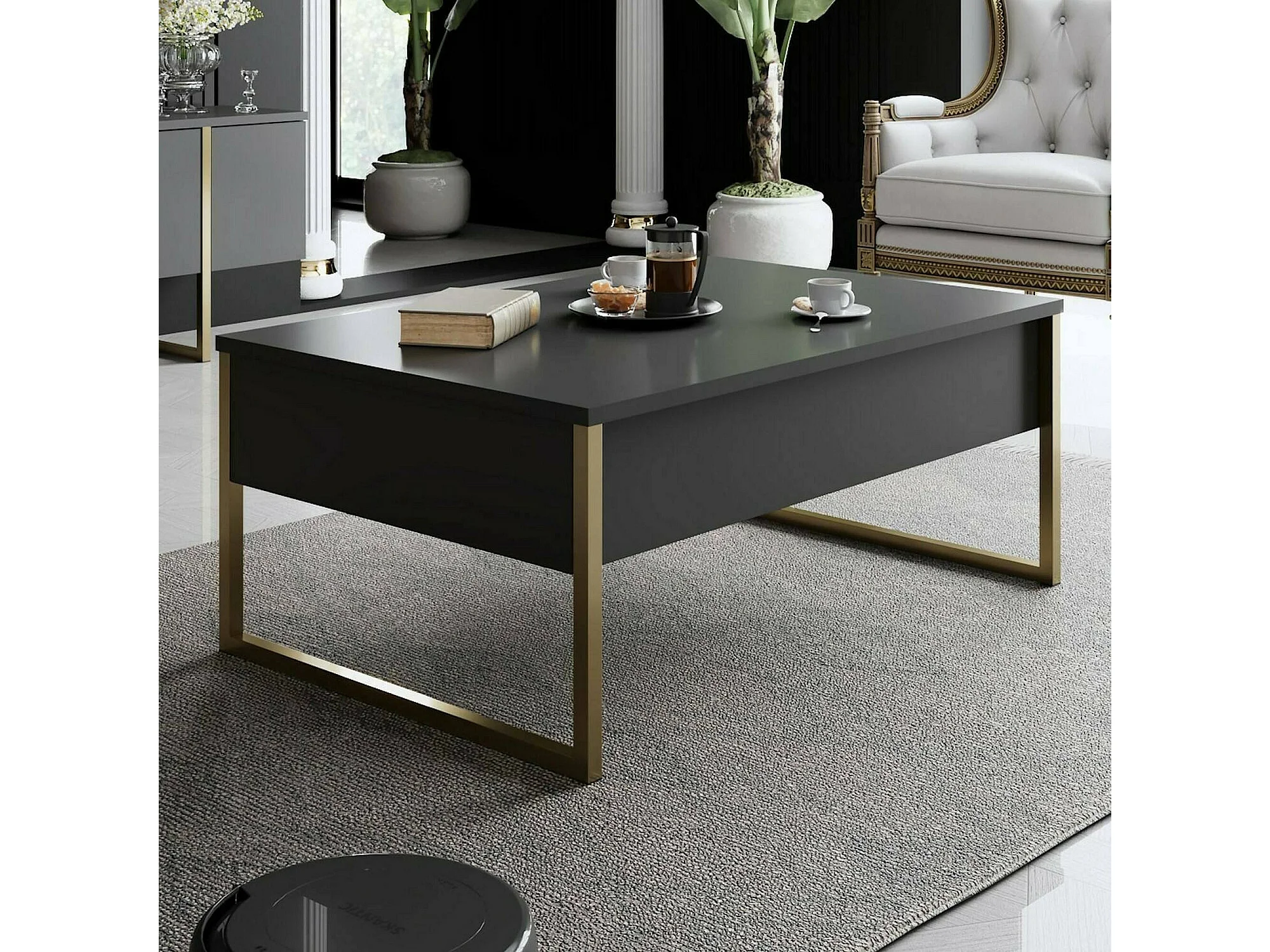 Table basse Canis, Table basse, Porte-revues pour canapé, Etagère de salon, 90x60h40 cm, Anthracite et Or