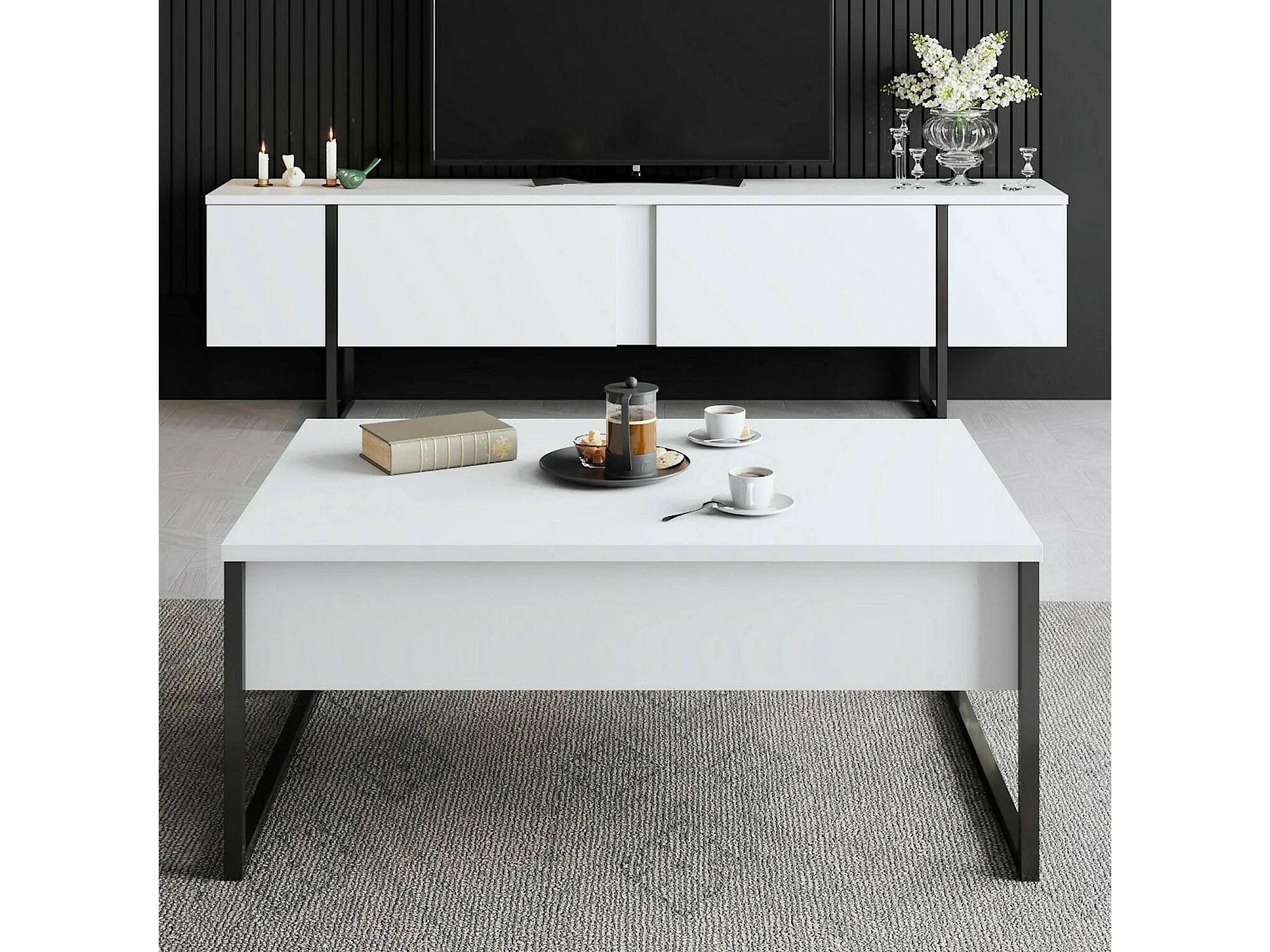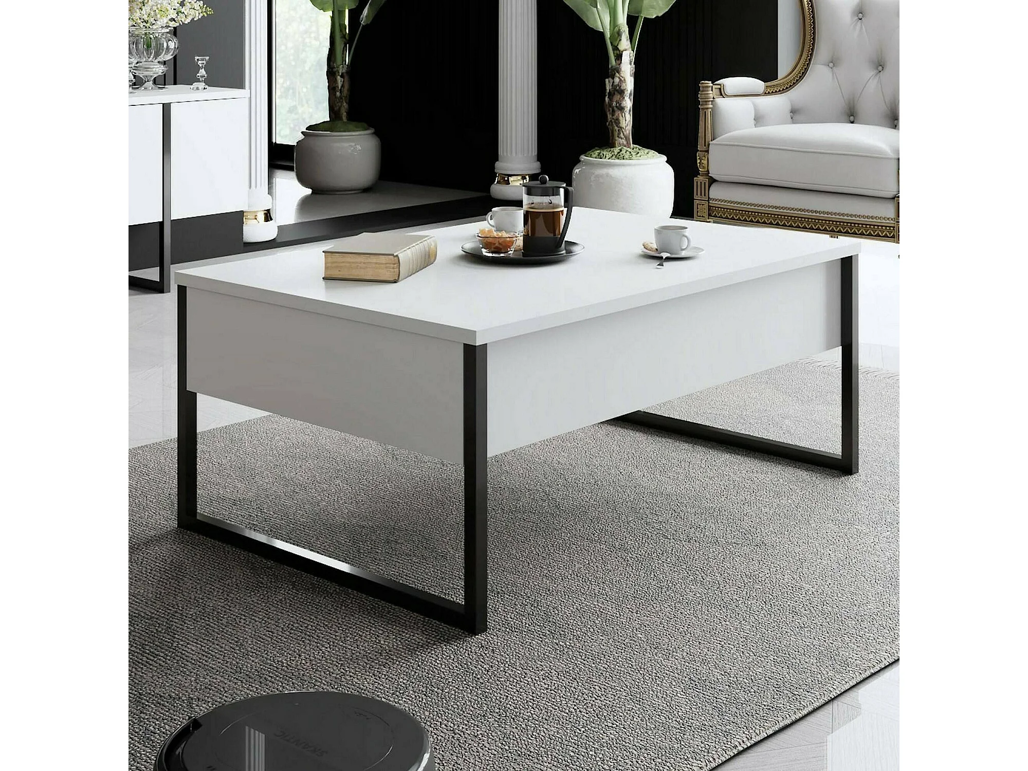 Table basse Canis, Table basse, Porte-revues pour canapé, Etagère de salon, 90x60h40 cm, Blanc et Noir