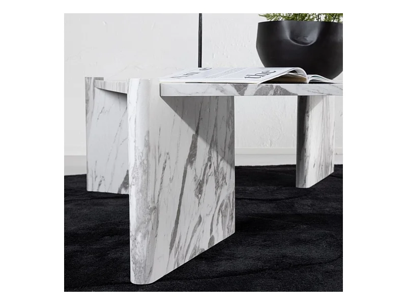 Table Basse Effet Marbre "Rogaland" 100cm Blanc