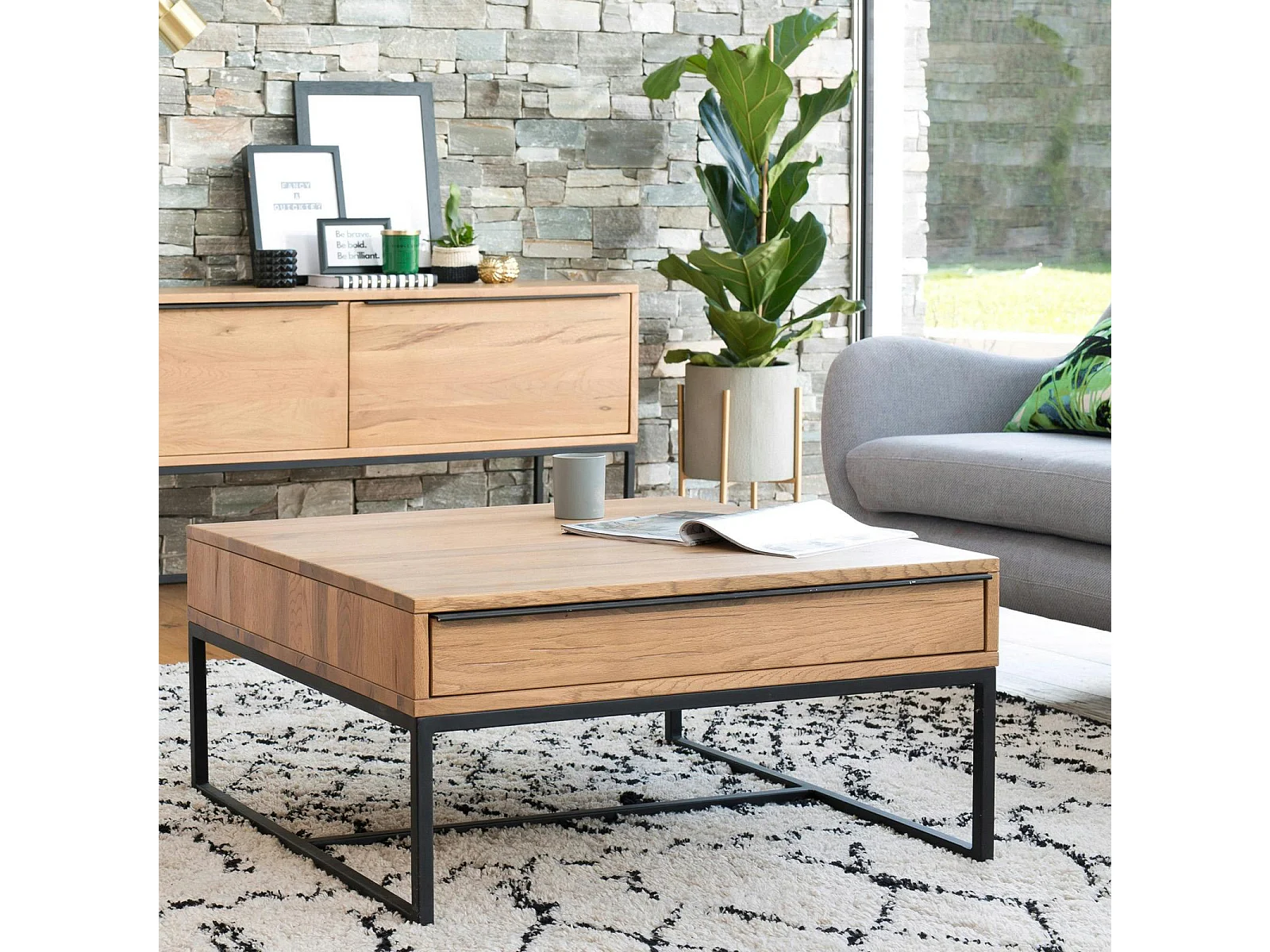 Table basse carrée 2 tiroirs VOLGA