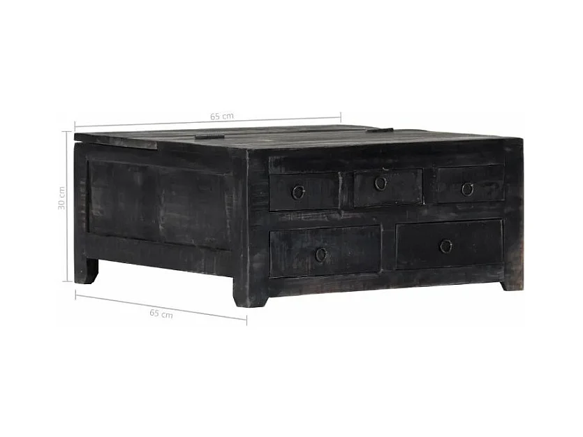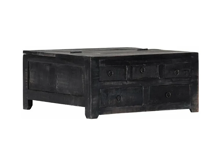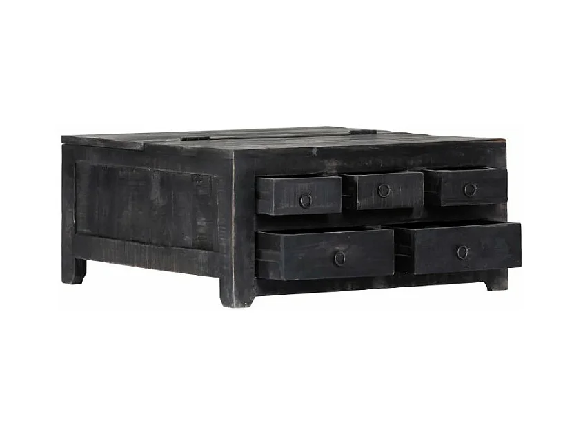 Table basse carrée 5 tiroirs manguier massif noir Pinkie
