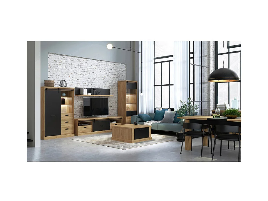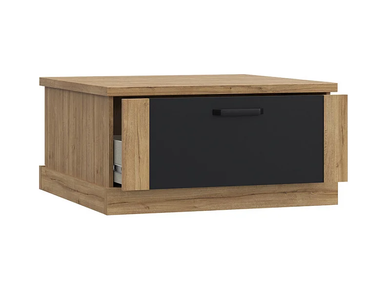 Table basse carrée 85 cm 2 tiroirs décor chêne et noir mat - FARM