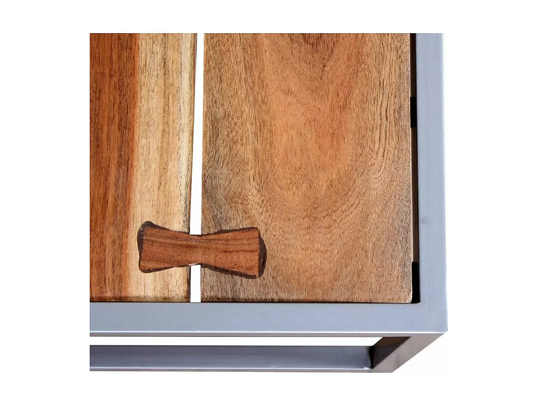 Table basse carrée acacia massif clair et métal gris Babola- Lot de 2