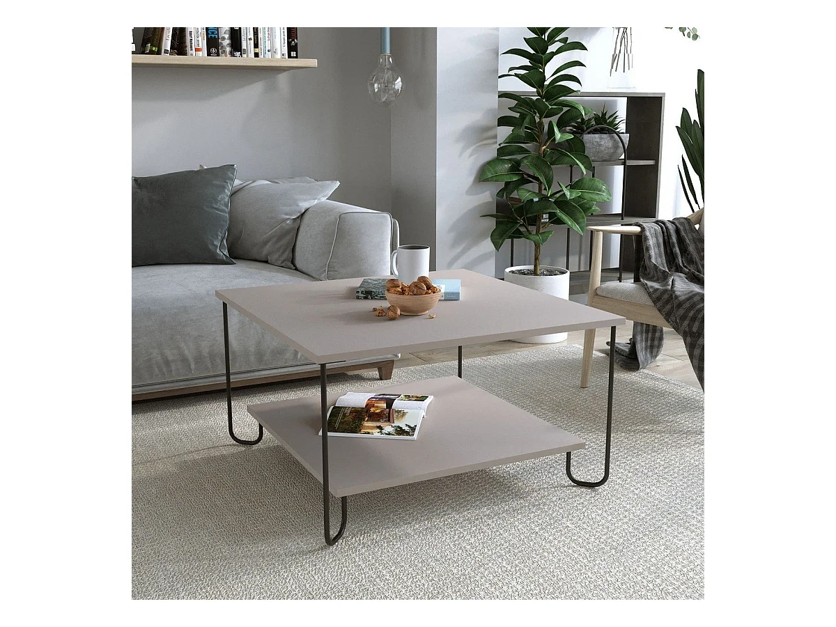 Table basse carrée avec pieds en métal L80 cm - TONKA