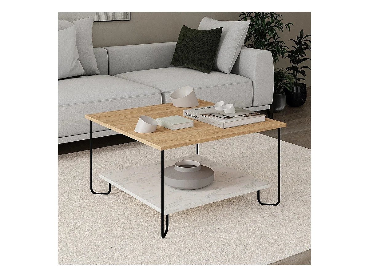 Table basse carrée avec pieds en métal L80 cm - TONKA