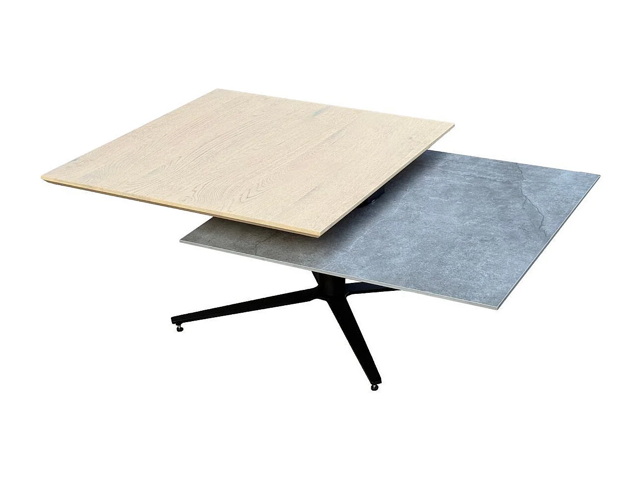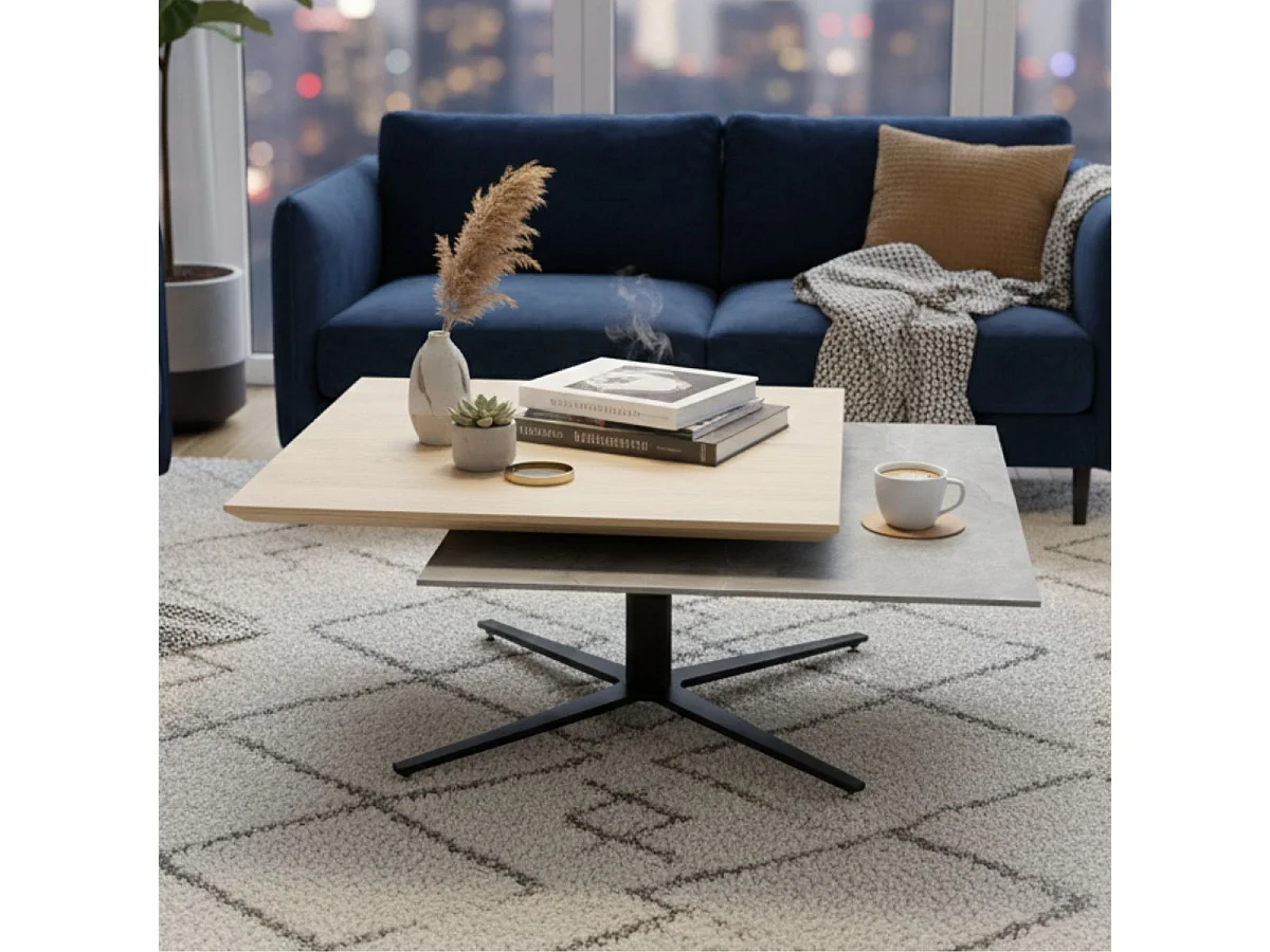 Table basse carrée avec plateau supérieur pivotant en céramique finition chêne et gris ardoise - FUSION